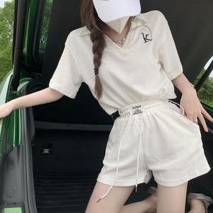 レディースサマールーズVネックシャツ ホワイトショーツ ストリート 夏物 ブルマー セブンプリンセス91077644579