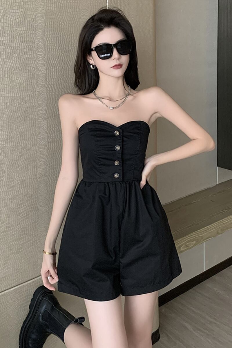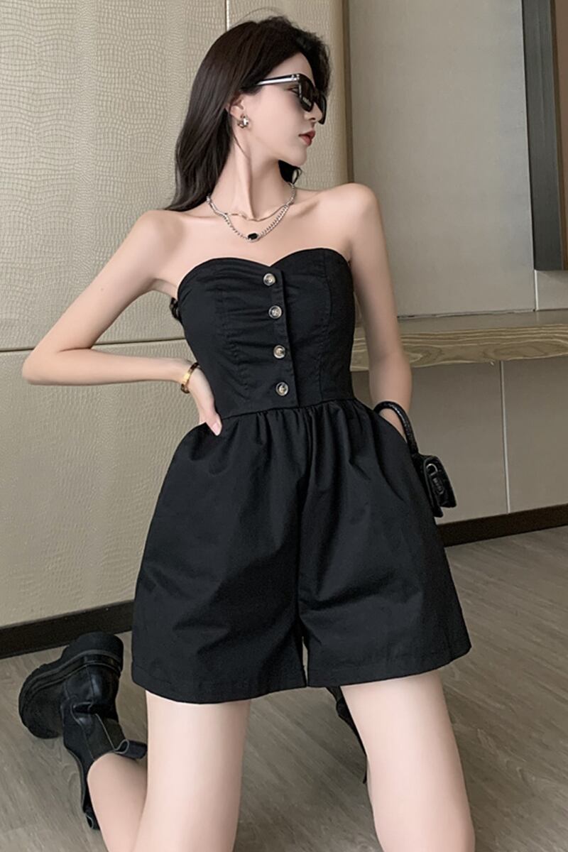 トップス ジャンプスーツ オールインワン サマーウェストハイウェストブラックショーツ 夏物 ブルマー セブンプリンセス87300956822