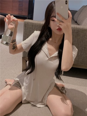 Tシャツ サマースリムフードカジュアルトップス 夏物 セブンプリンセス47315917777