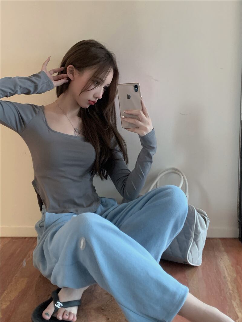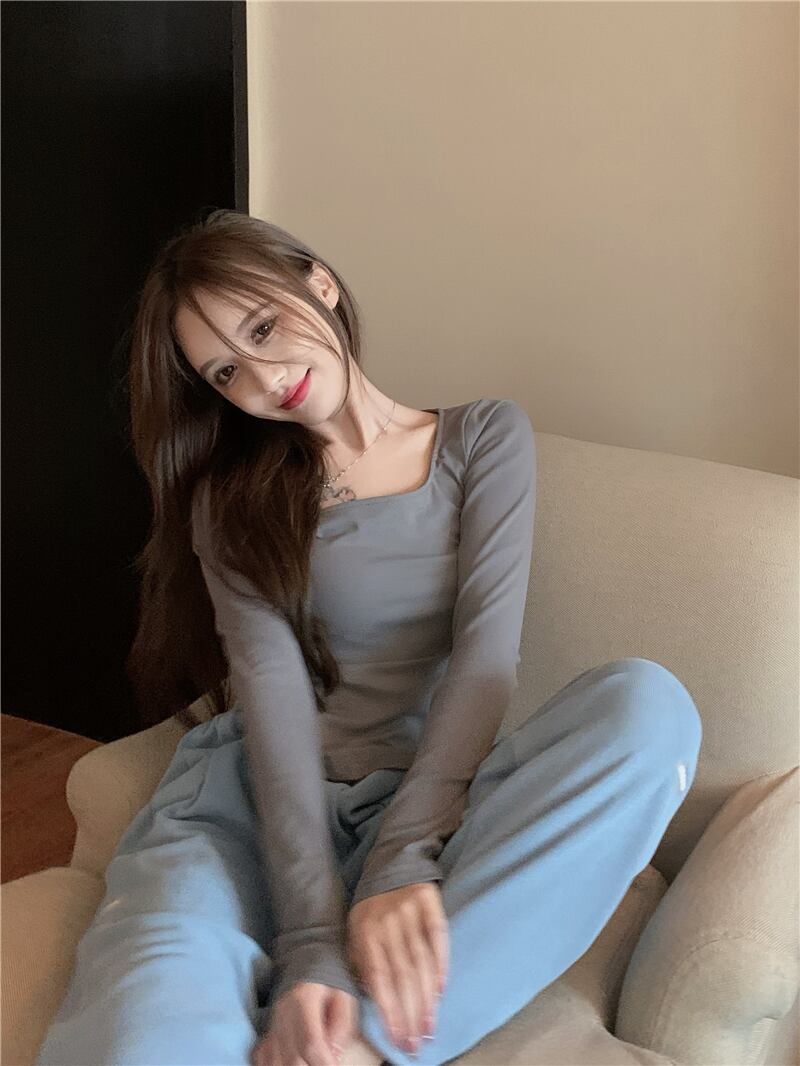 Tシャツ サマースリム薄手ショートカラートップス ロング 夏物 スクウェア セブンプリンセス30392048230