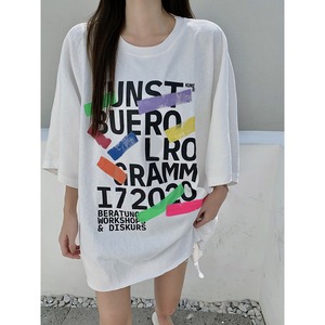 プリント柄Tシャツ レディースサマー薄手ルーズスリーブトップス 夏物 セブンプリンセス92867500179