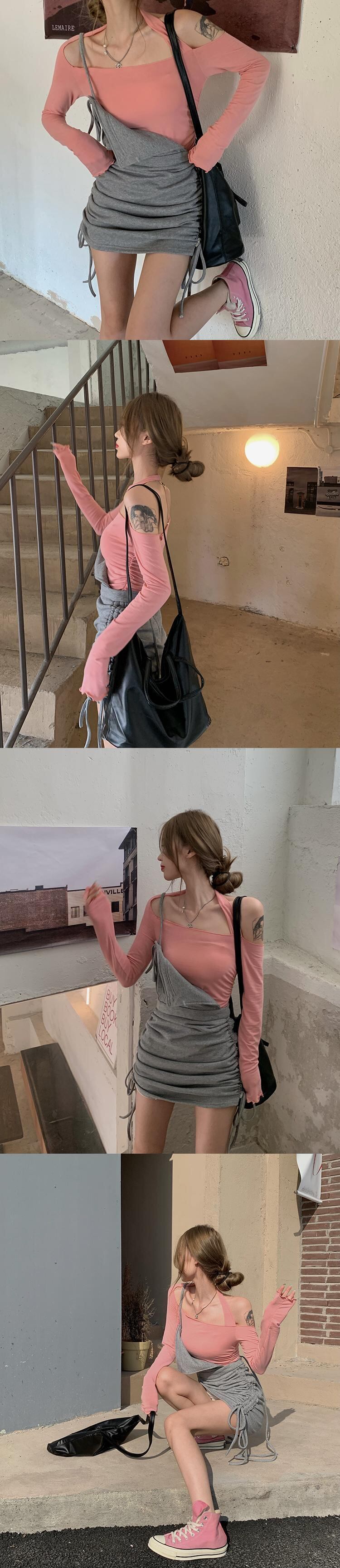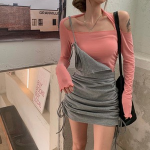 色:白いストラップドレス,ピンクトップ,グレーストラップドレス,ブルートップ