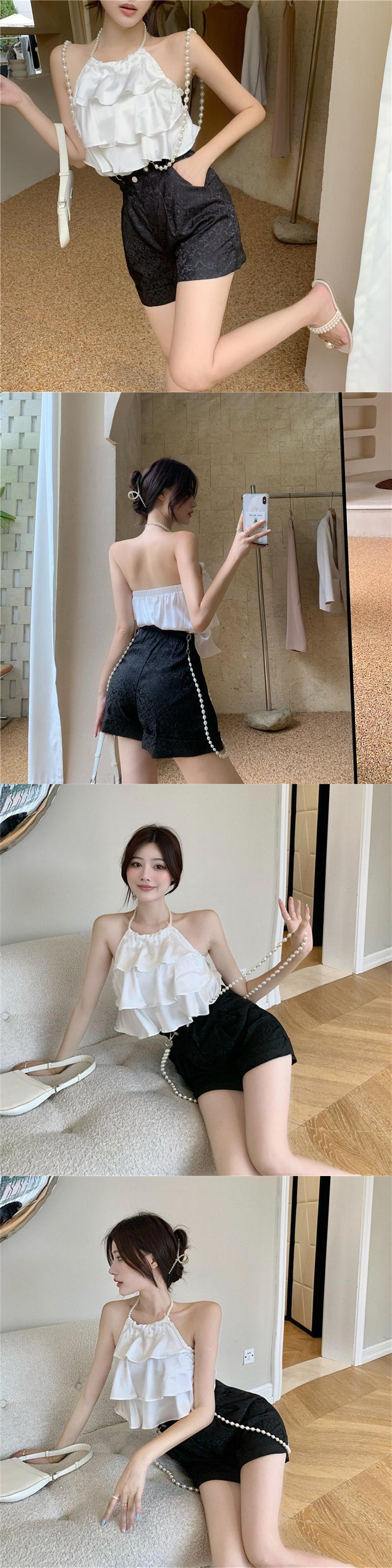 色:ホワイトショーツ,ホワイトパールストラップ,黒のショートパンツ,ブラックパールストラップ,パールチェーンストラップ