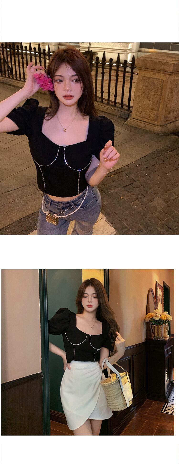スリーブカラーシャツ レディースサマー薄手スリム半袖スタンダードトップス ショート レトロ ハーフスリーブ 夏物 スクウェア セブンプリンセス25940816297