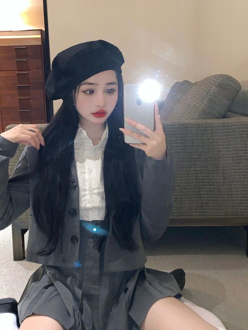 スタンダードショートプリーツスカート ホワイトシャツ レトロ セブンプリンセス68621700378