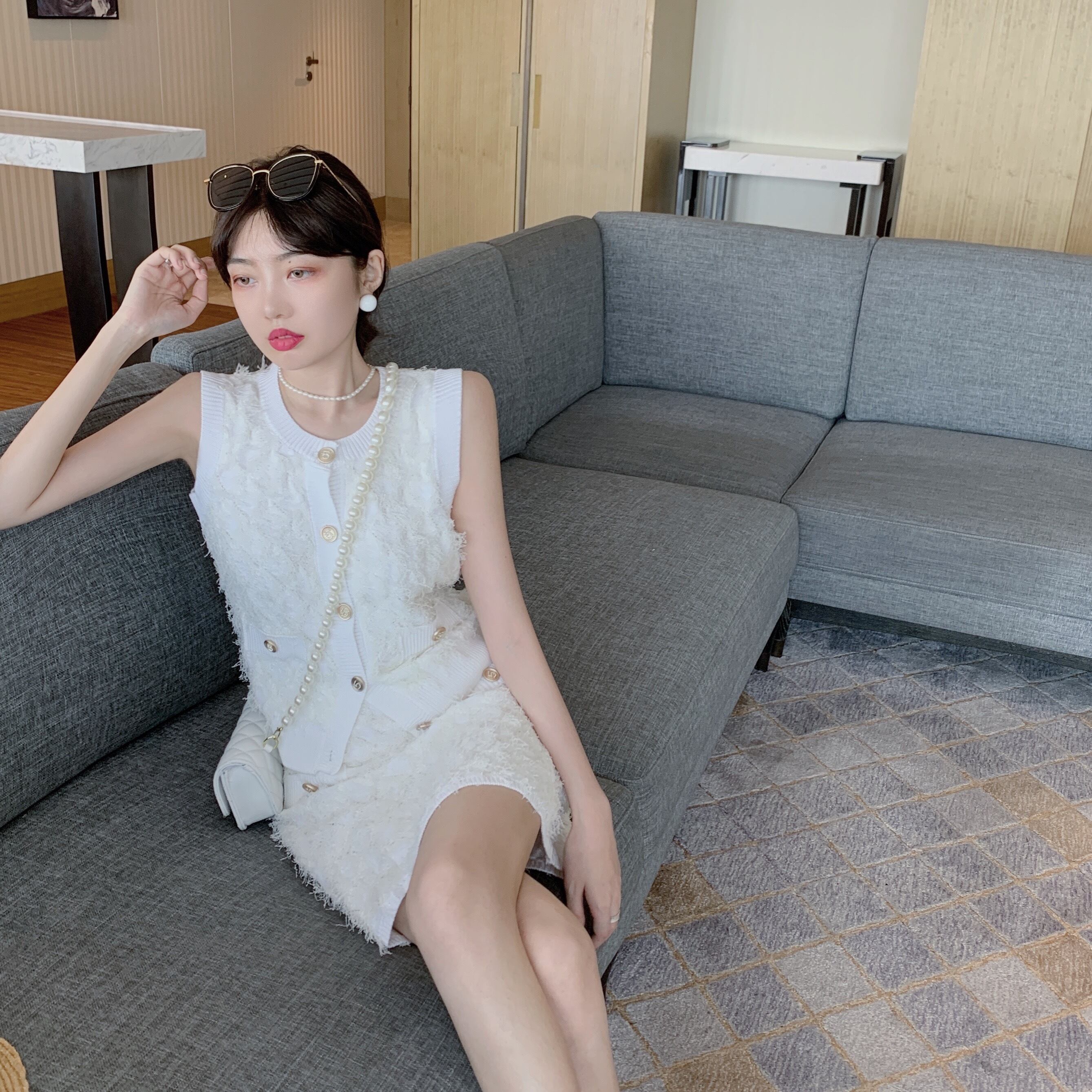 スタイルスカート スタンダードサマーノースリーブニットカーディガンシャツ ホワイト レトロ 夏物 セブンプリンセス62892535324