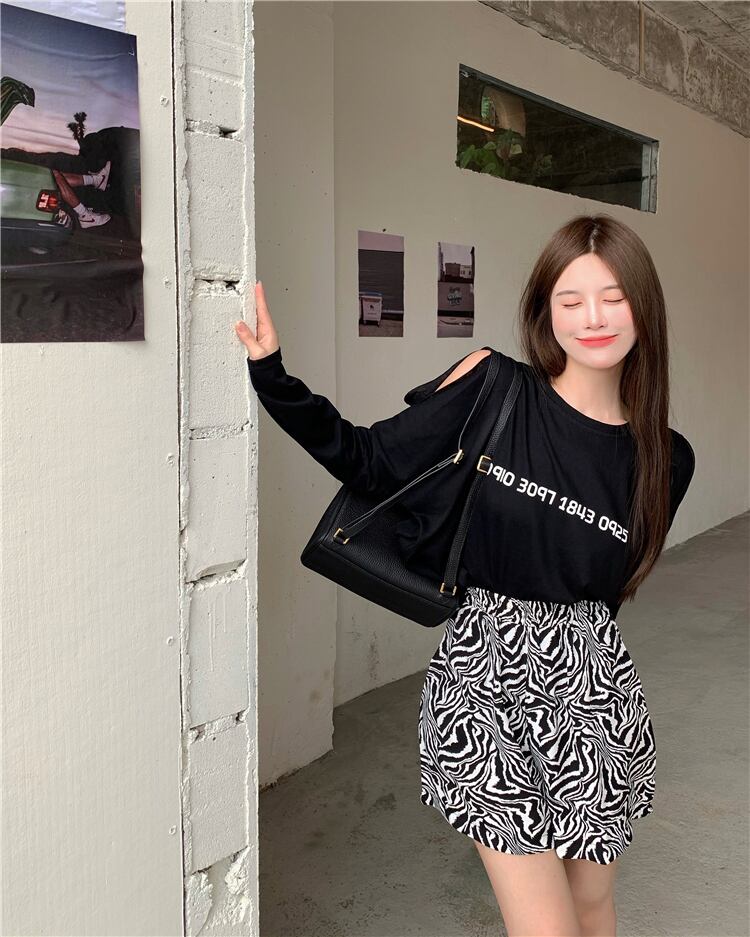 ブラックストラップレスTシャツ シャツ サマー薄手カジュアルプリントレッド ロング 夏物 セブンプリンセス48150479269