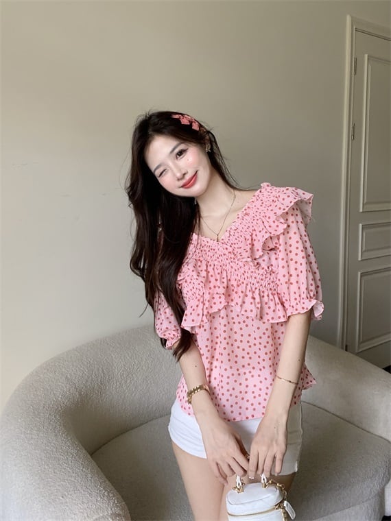 シャツ サマー水玉スリーブスタンダードトップス レトロ 夏物 セブンプリンセス50475021057