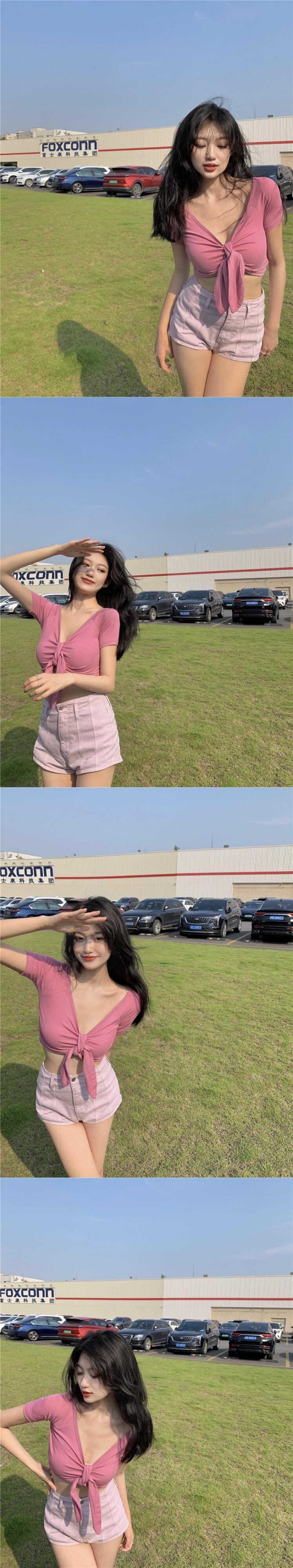 ショートTシャツ サマーVネックスリムトップス 夏物 セブンプリンセス20711681566