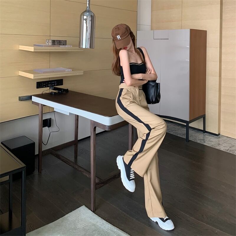 カラーストライプカジュアルパンツ サマールーズハイウェスト薄手 夏物 セブンプリンセス66430813179