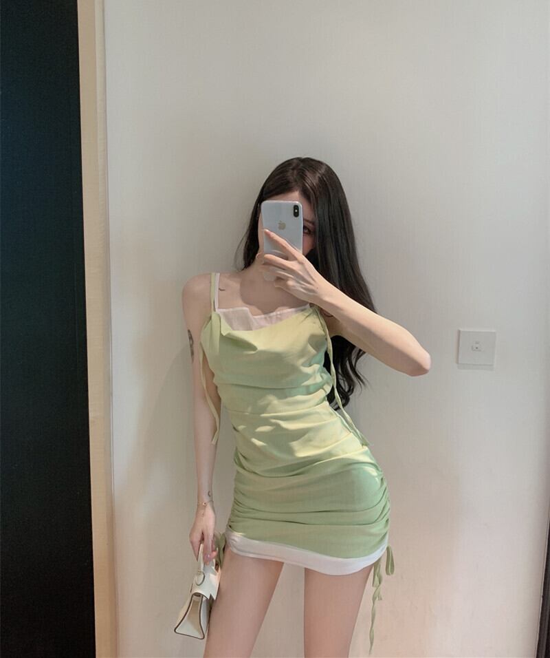 ドレス サマーカラーギャザースリムスカート ショートウェストグリーン 夏物 セブンプリンセス13076019774
