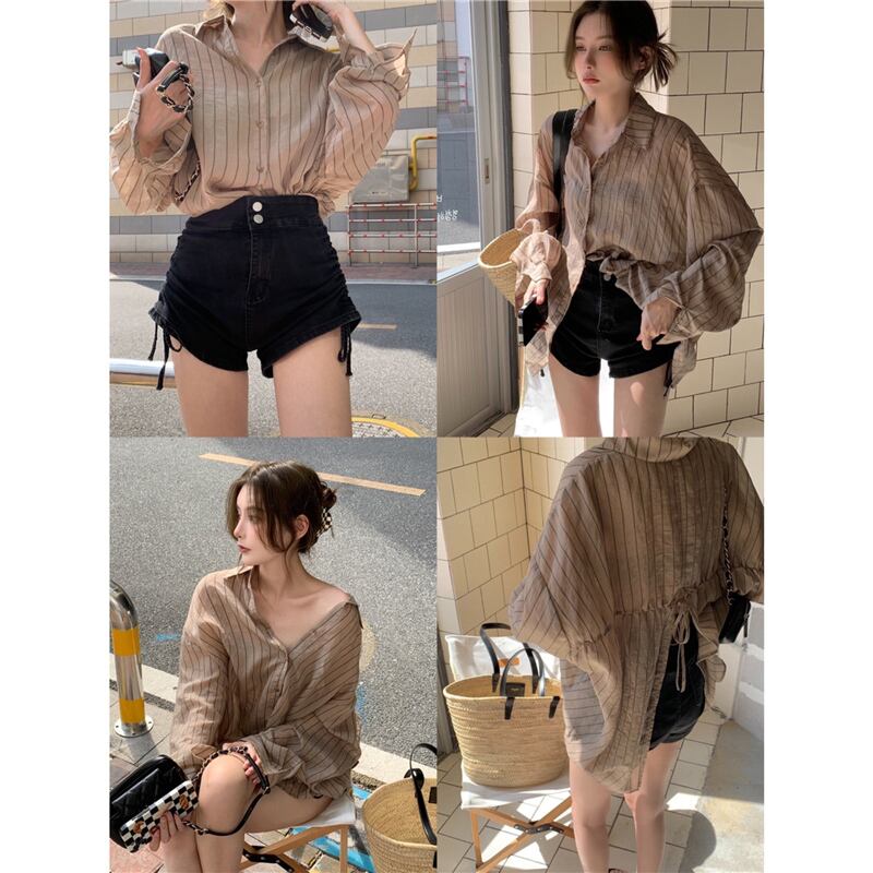 スタンダードストライプシャツ ジャケット レディースサマー薄手ルーズカーディガントップス ロング レトロ 夏物 セブンプリンセス82033278501