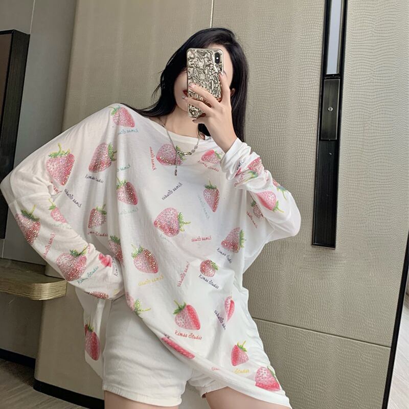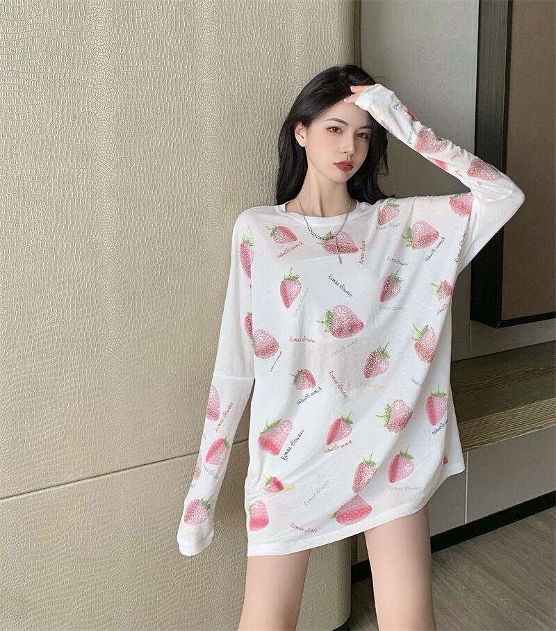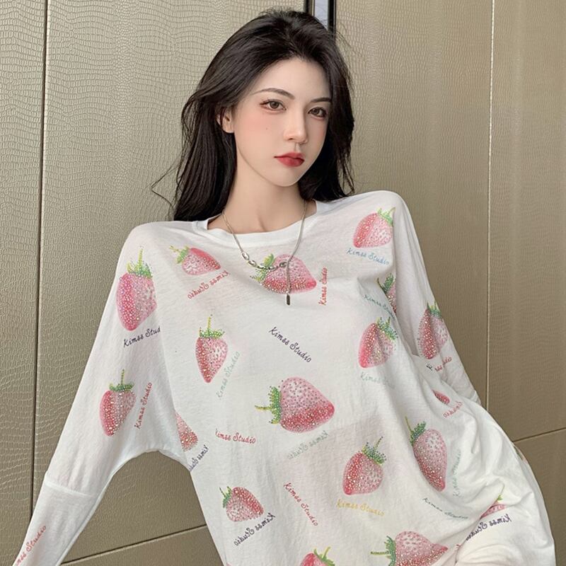 Tシャツ サマースタイルラインストーンルーズ薄手ホワイトトップス ロング 夏物 セブンプリンセス54286621602