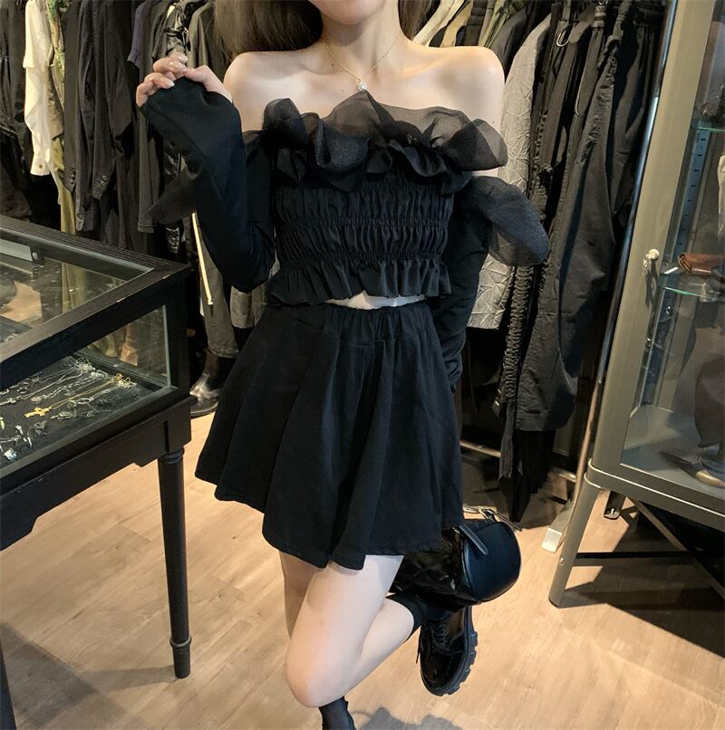 シャツ レディースサマーブラックショートトップス ロング 夏物 セブンプリンセス73586136894
