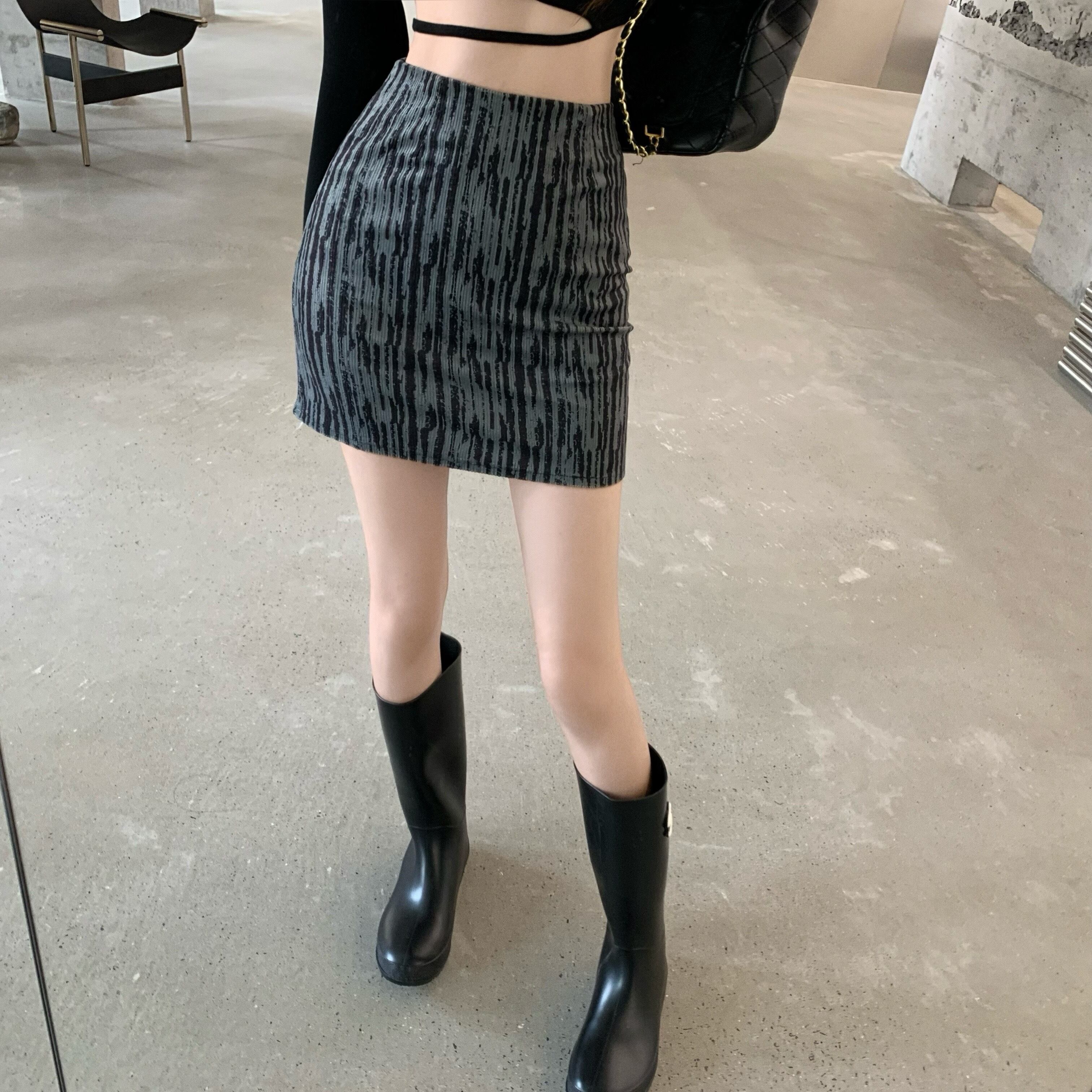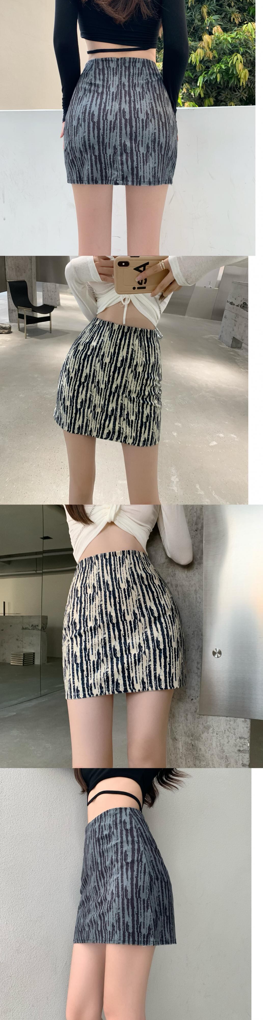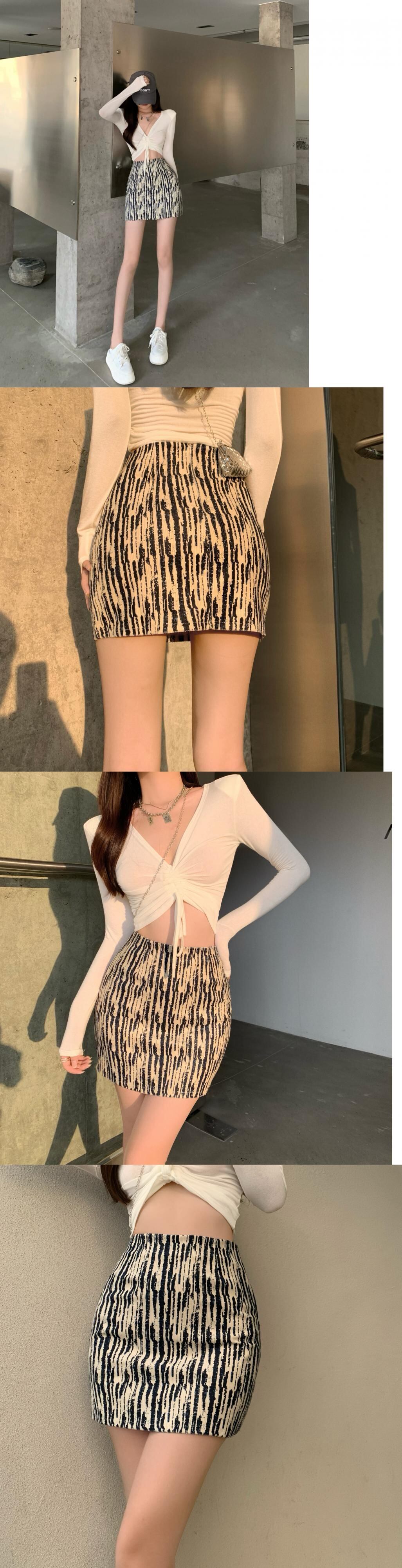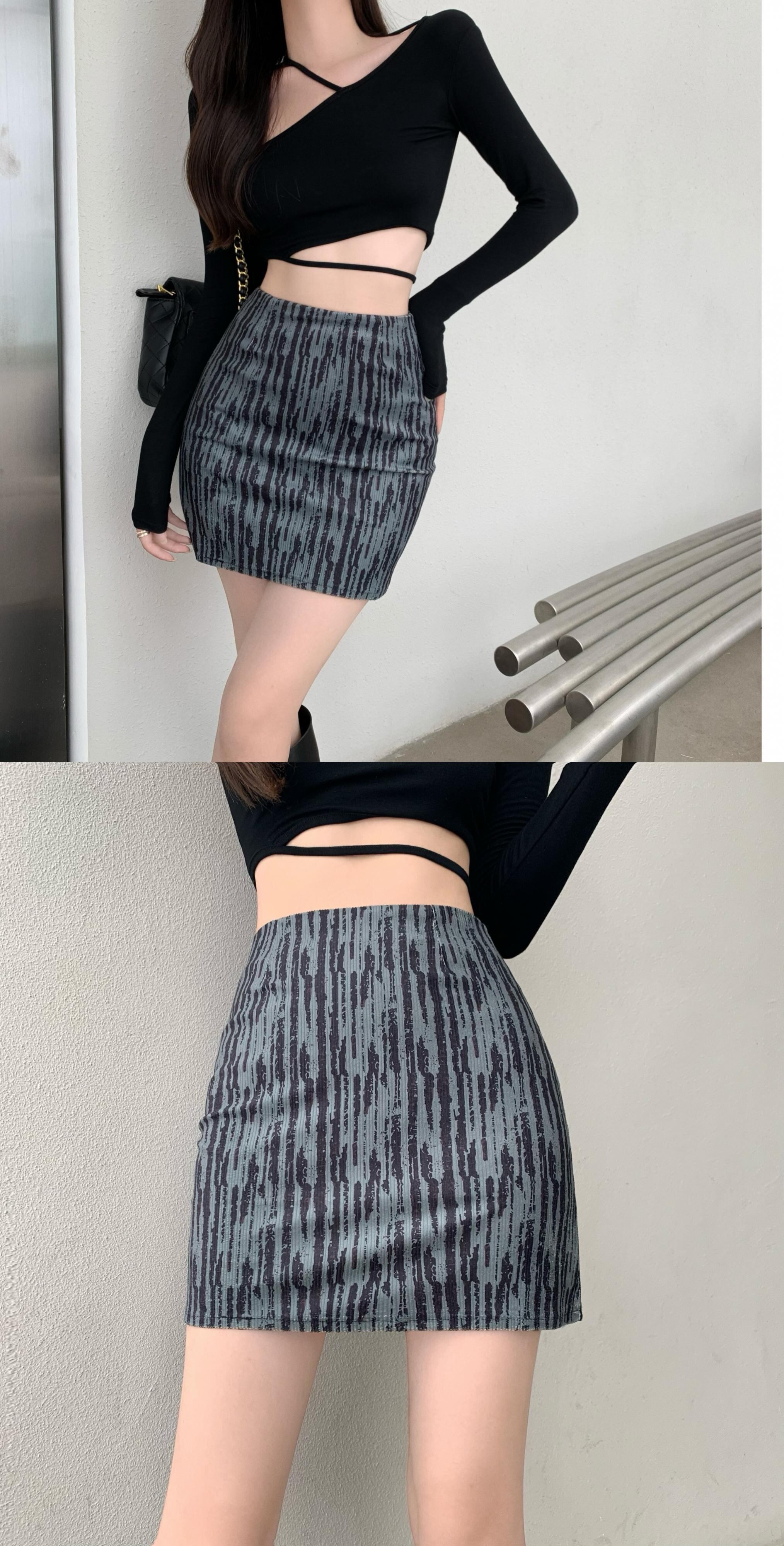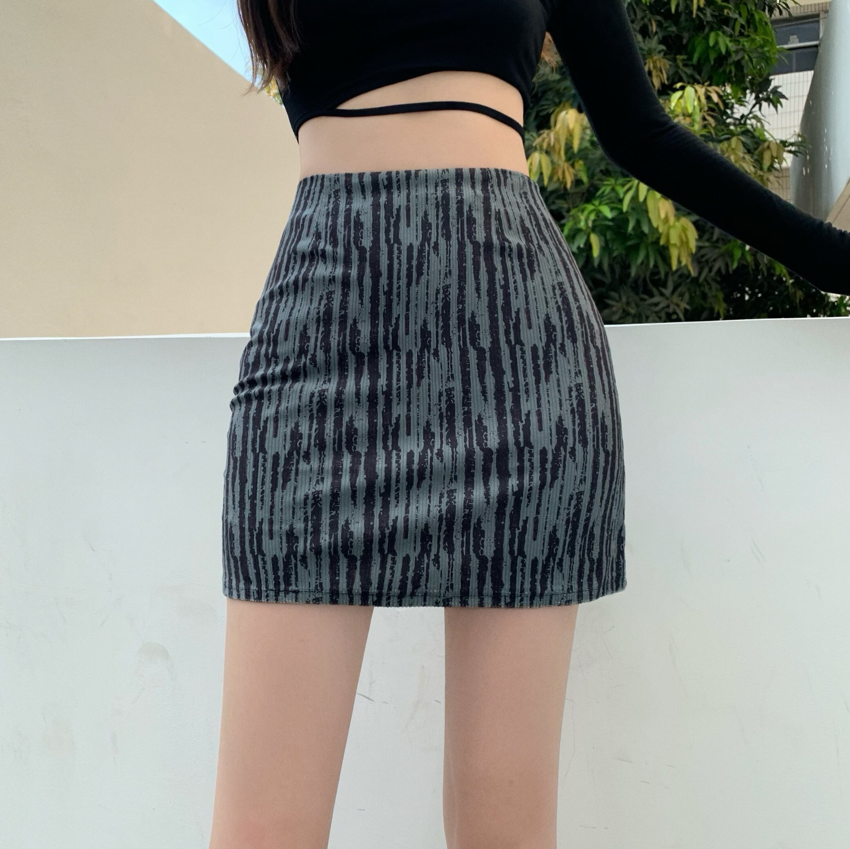ストライプスカート サマーハイウェストウェスト薄手スタンダードAライン レトロ 夏物 セブンプリンセス14508003412