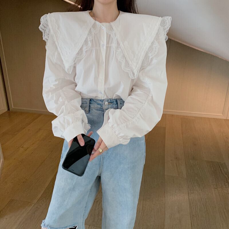 カラーシャツ サマーレース薄手ルーズトップス ロング 夏物 セブンプリンセス62660041009