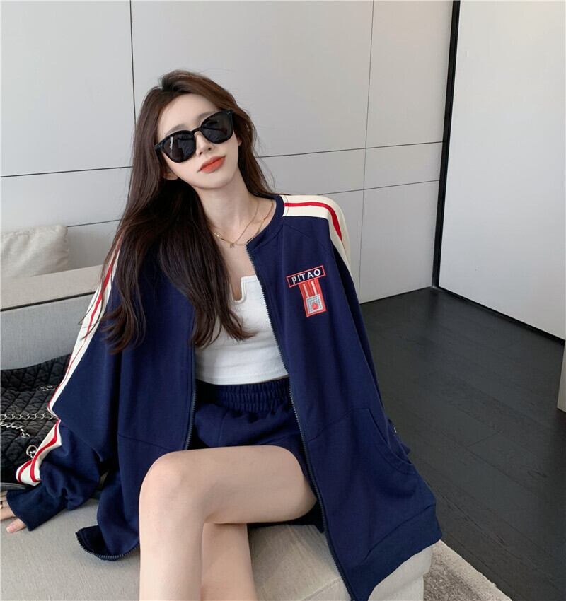 ジャケット オータムカラーストライプルーズカジュアルジッパーカーディガンスタンダードレッドトップス ロング レトロ 秋物 セブンプリンセス93802797697