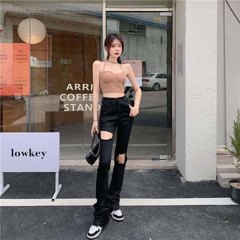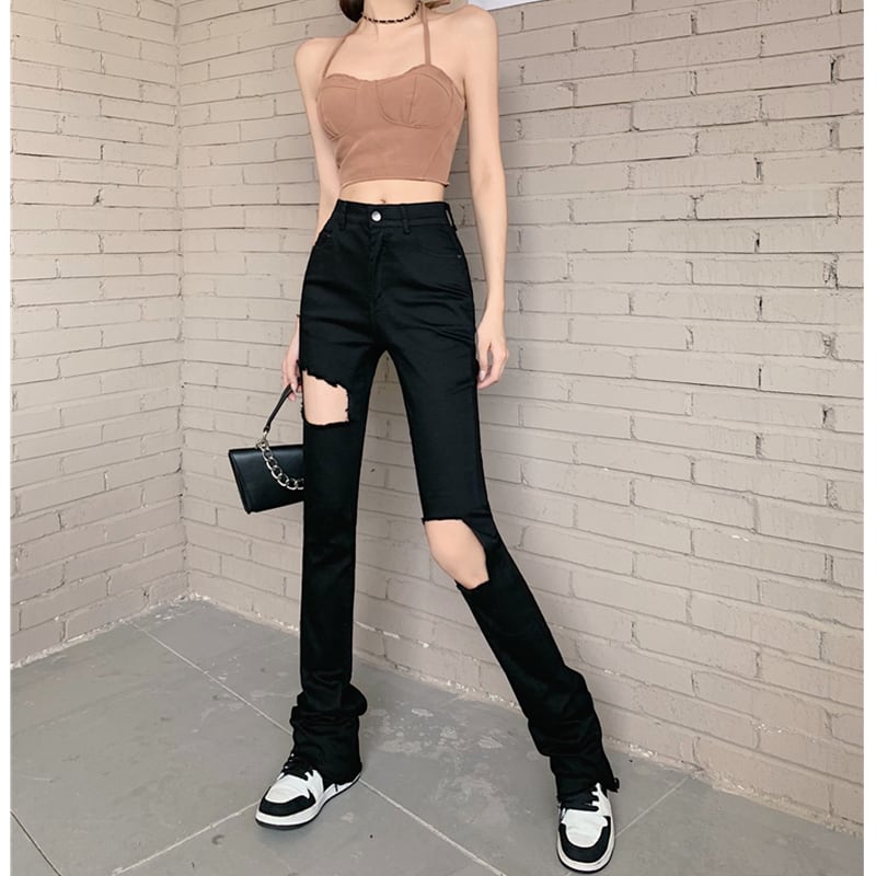 ブラックジーンズ サマーハイウェストスキニーパンツ 薄手 夏物 セブンプリンセス54627512074