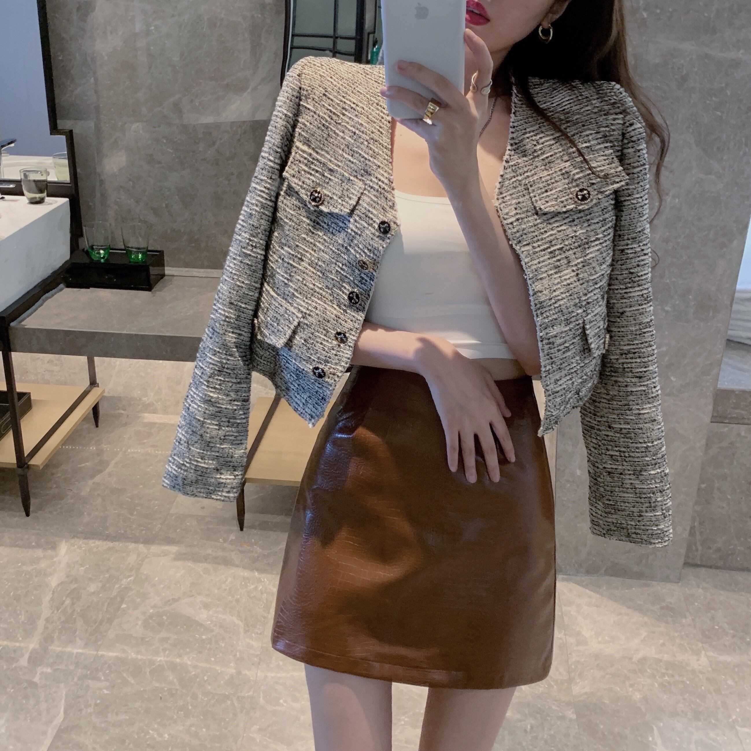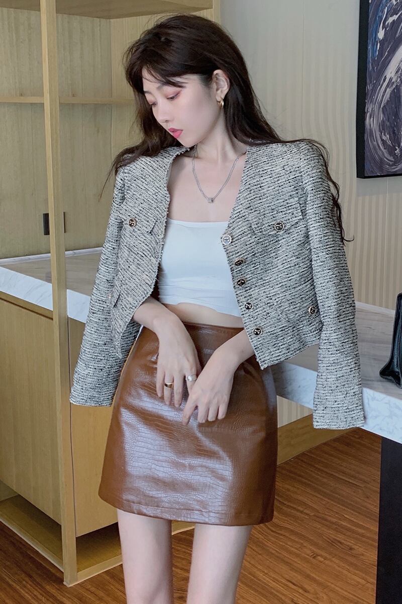 色:Xiaoxiang編組ショートコート,クロコダイル柄レザースカート