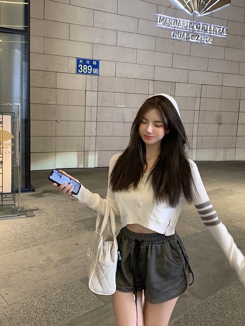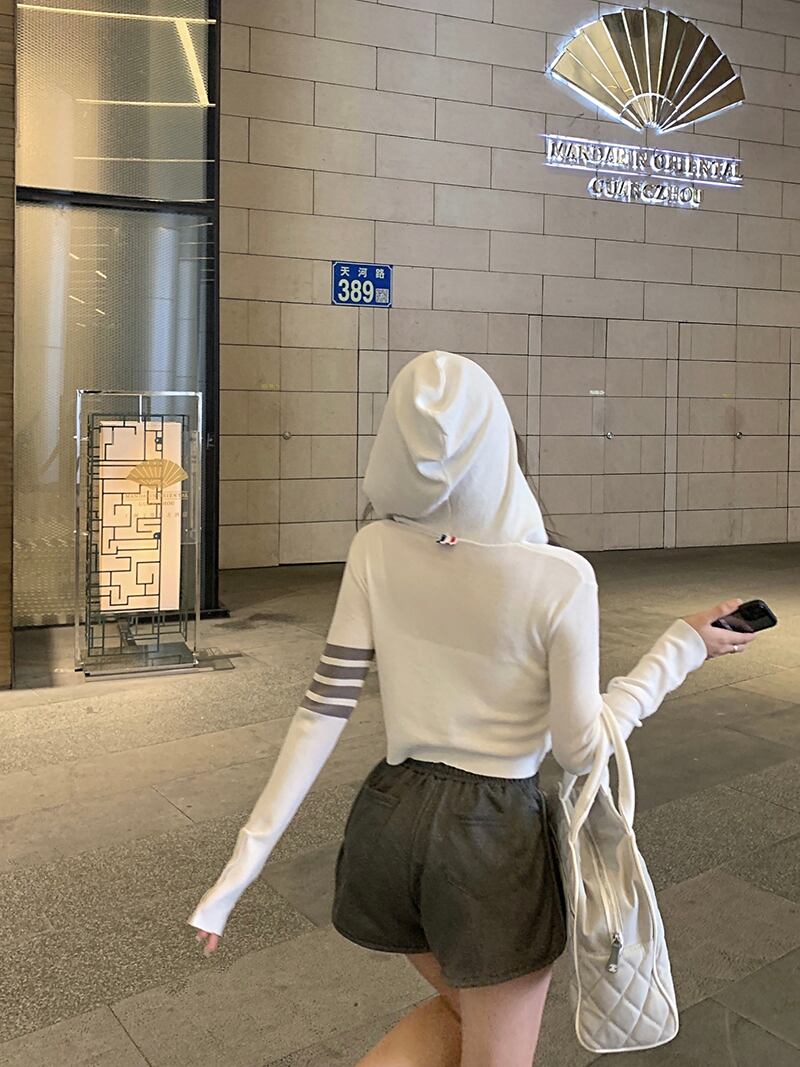 ショートニットセーター レディースサマーフードカーディガンブラウス 薄手スリムストライプトップス ロング 夏物 セブンプリンセス41448754818