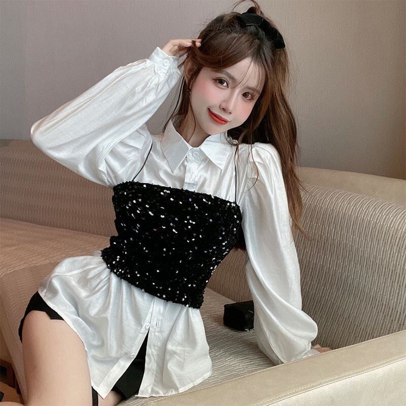長袖スリーブシャツ レディースサマー薄手ルーズホワイトカジュアル ロング 夏物 セブンプリンセス71024506590