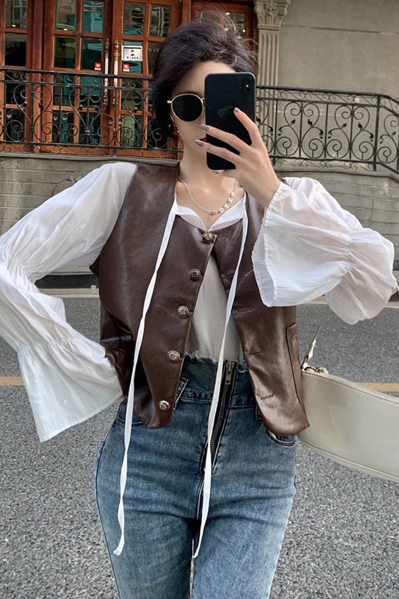 色:黒のベスト,白のシャツ,コーヒーベスト
