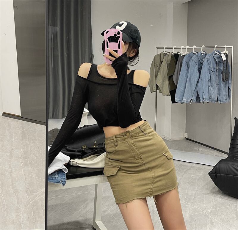 カーキスカート サマーハイウェストウェストショートレッドスタンダード薄手 レトロ 夏物 セブンプリンセス74075285427