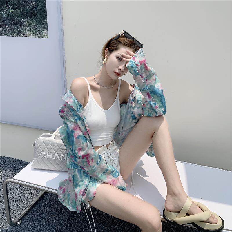 プリントシャツ レディースサマー薄手ルーズカラーカーディガンジャケット ロング 夏物 セブンプリンセス41337589694