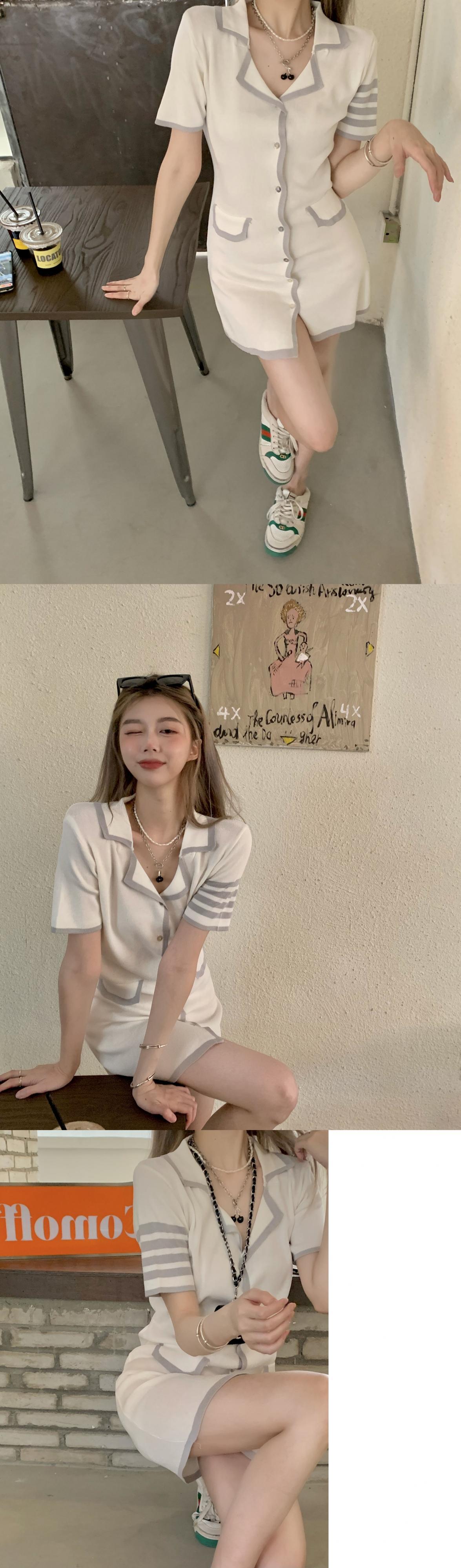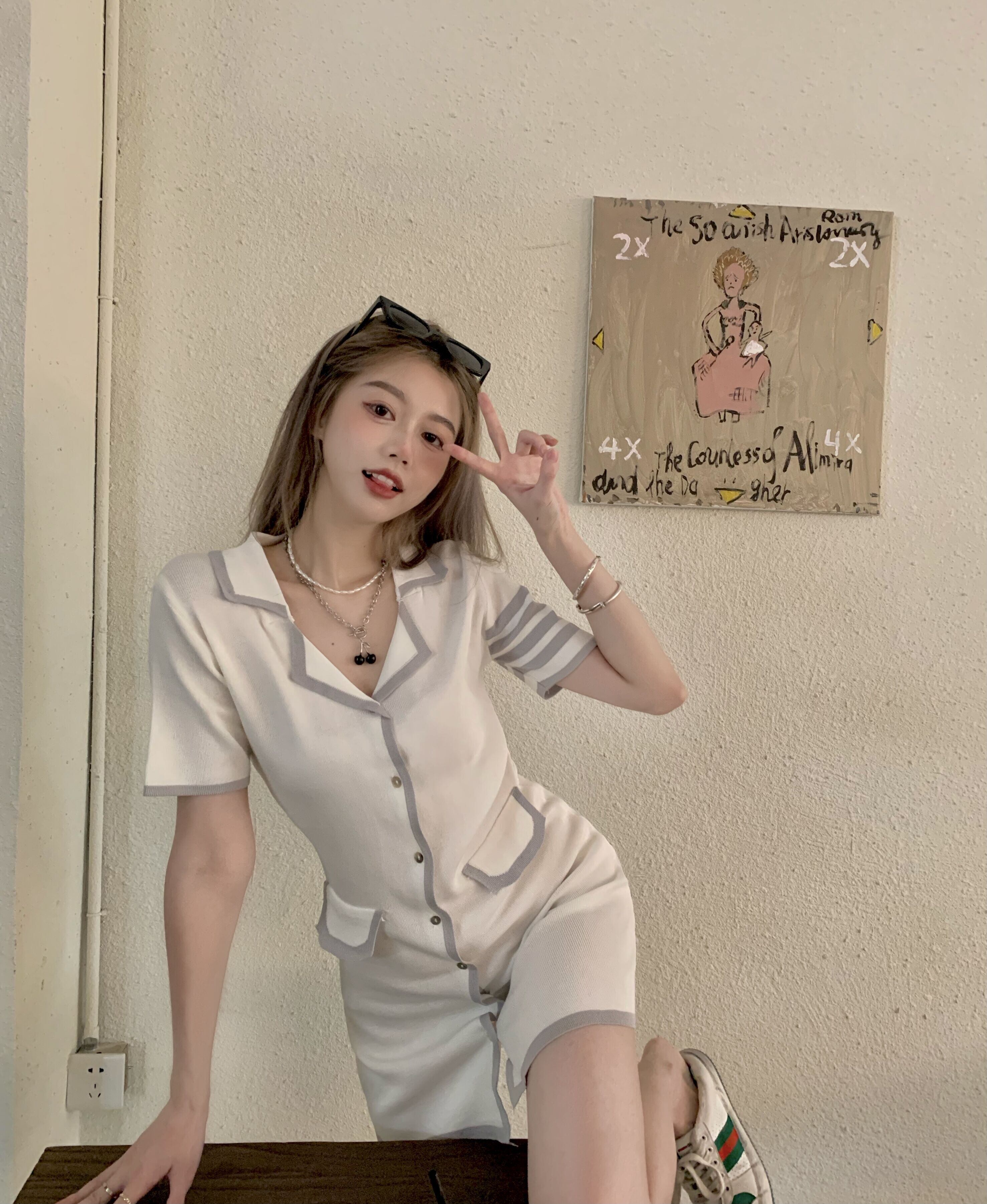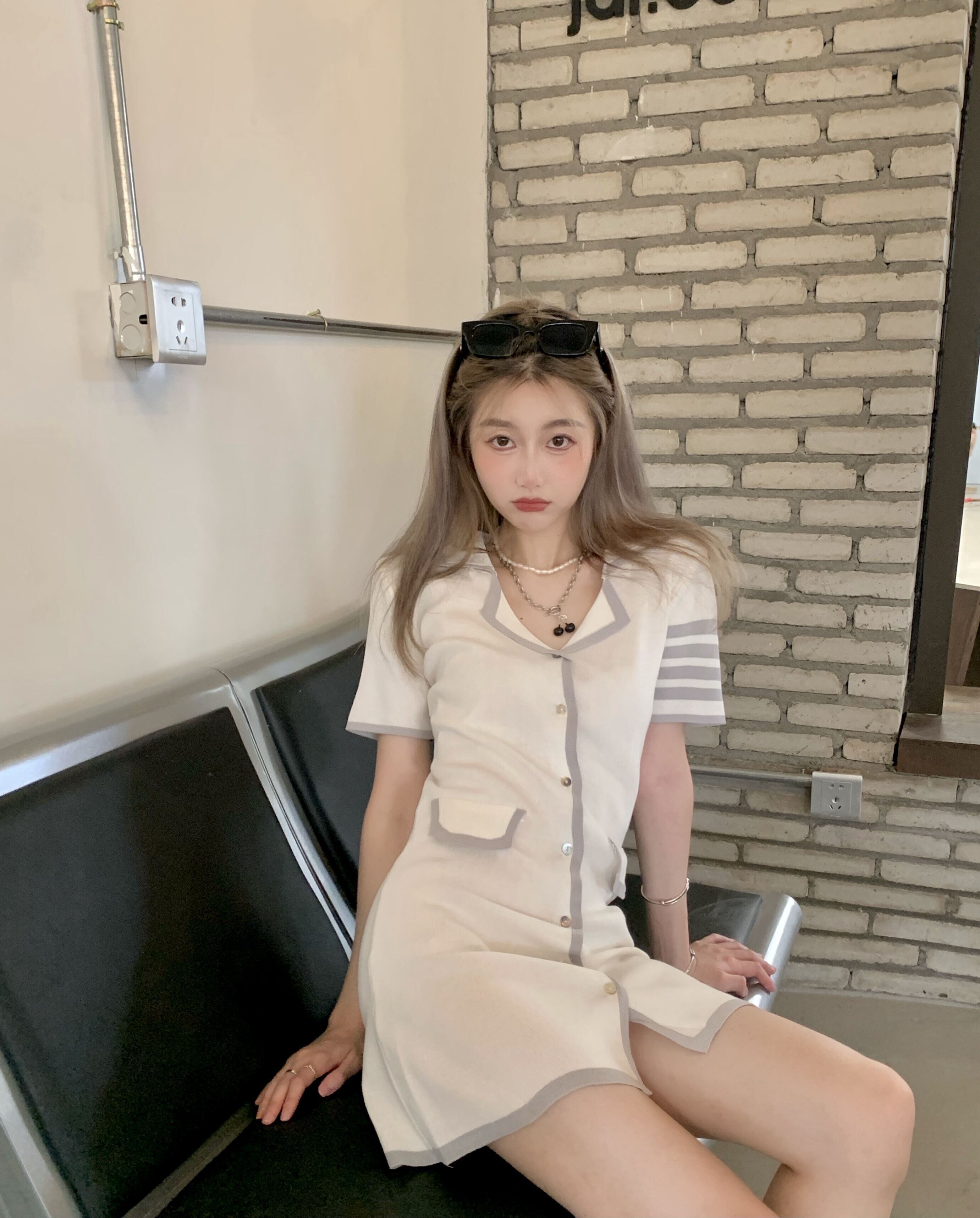 カラーニットドレス サマースタンダードショートスカート レトロ 夏物 セブンプリンセス61851008925