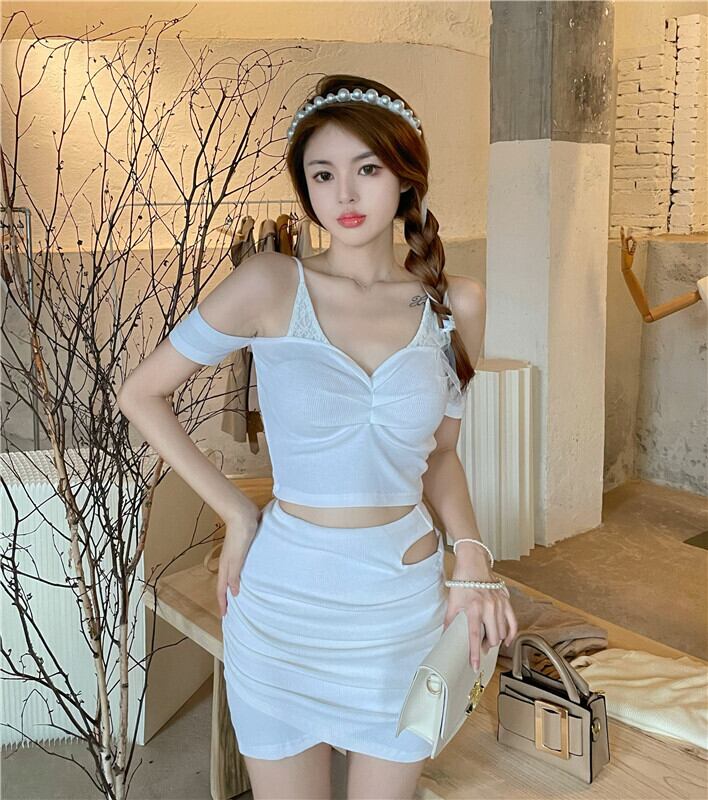 ホワイトサマーレーストップス クロススカート 夏物 ステッチ セブンプリンセス67856750473