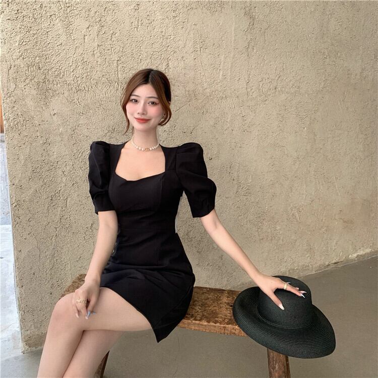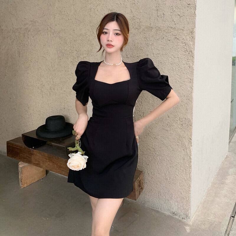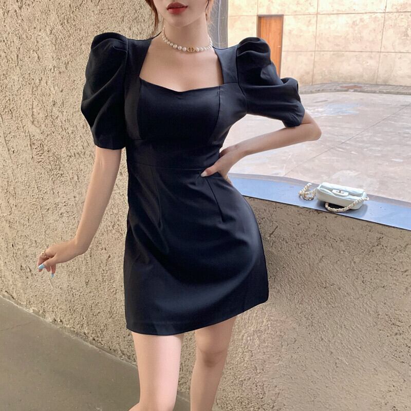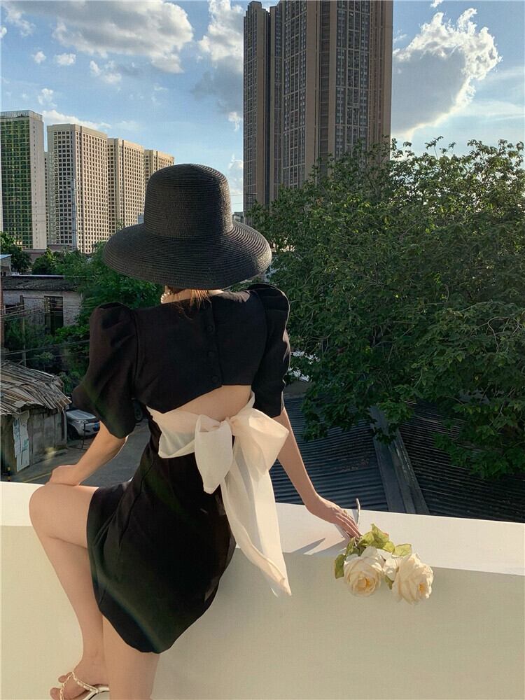 ドレス スタンダードカラースカート サマーウェストリボンブラックAライン レトロ 夏物 スクウェア セブンプリンセス74218124028