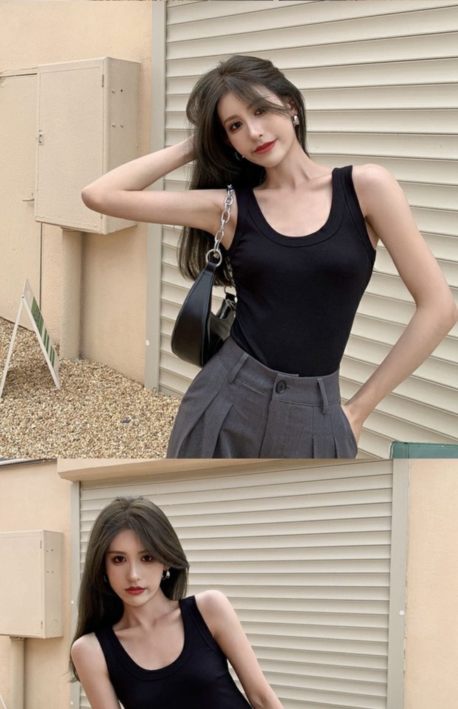 ホワイトレッドレディーススリムショートノースリーブトップス サマー 半袖 ハーフスリーブ 夏物 セブンプリンセス8304158905