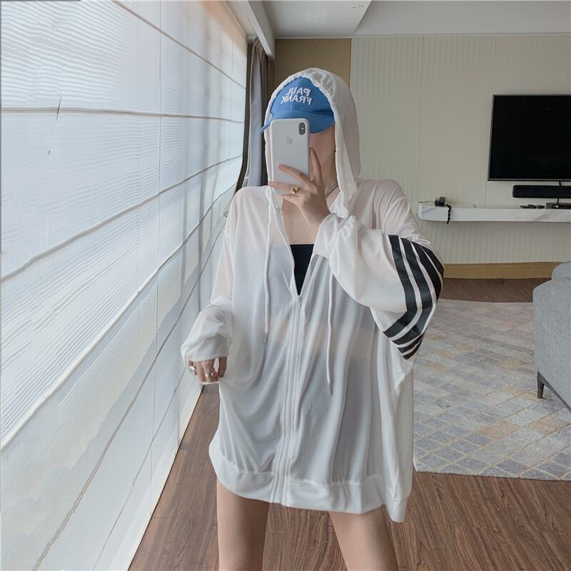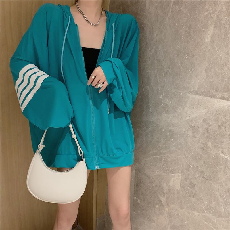薄手レディースサマーフードジャケット スタイルルーズジッパートップス ロング 夏物 セブンプリンセス24814394926