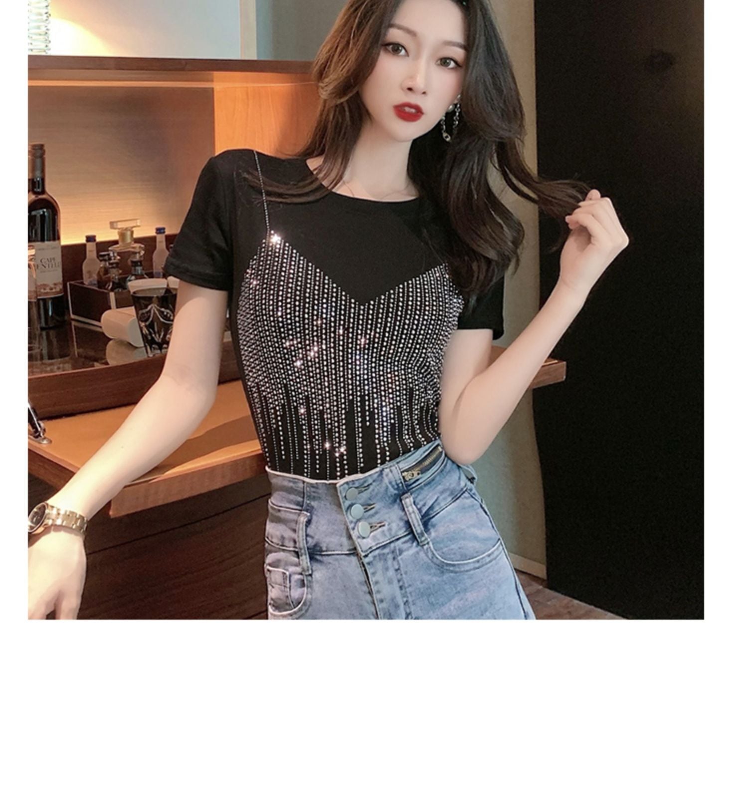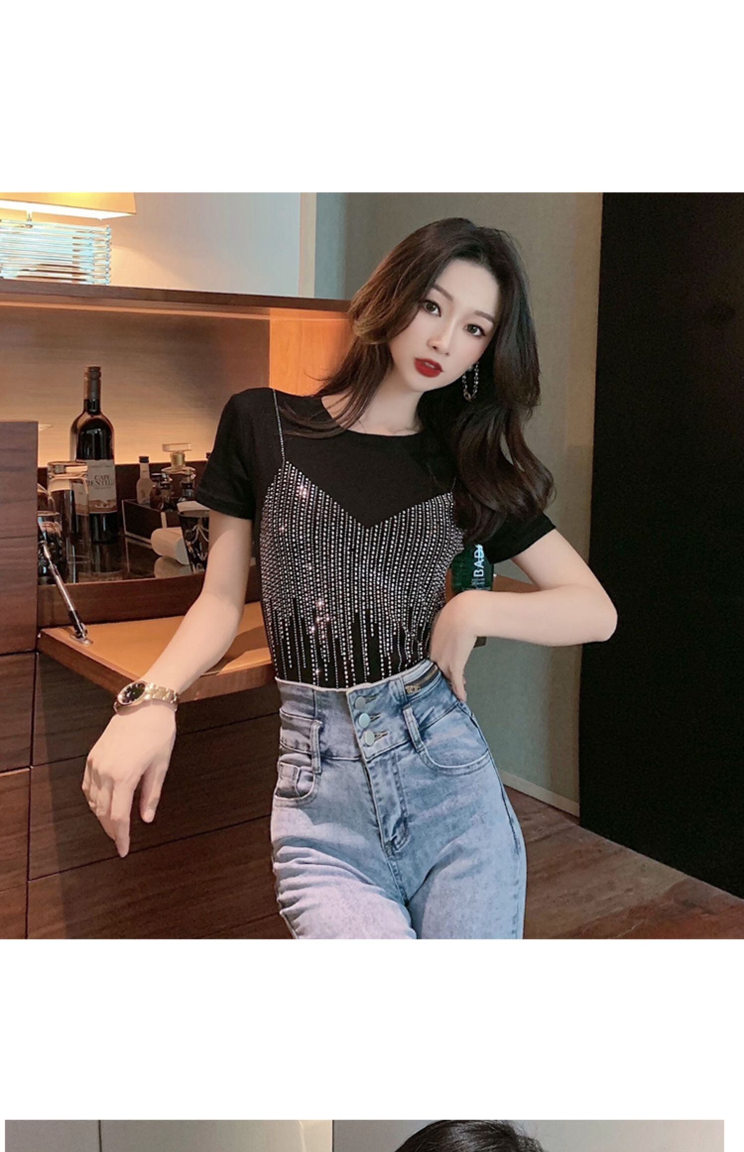 Tシャツ サマーショートブラック薄手トップス 夏物 セブンプリンセス4942687359