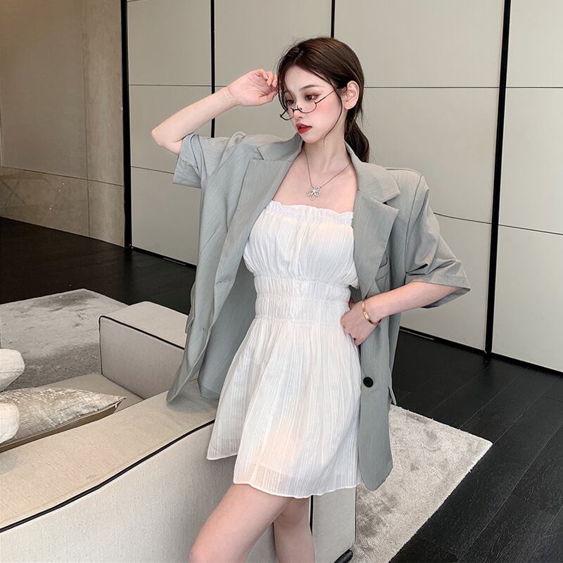 ホワイトドレス サマーウェストAラインショートスカート 薄手 夏物 セブンプリンセス98598451445