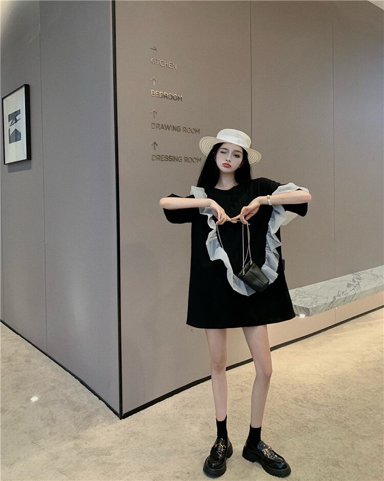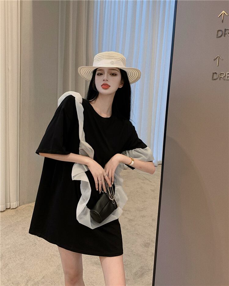 ブラックドレス サマースカート カラーTシャツ ルーズ 夏物 セブンプリンセス23976629509
