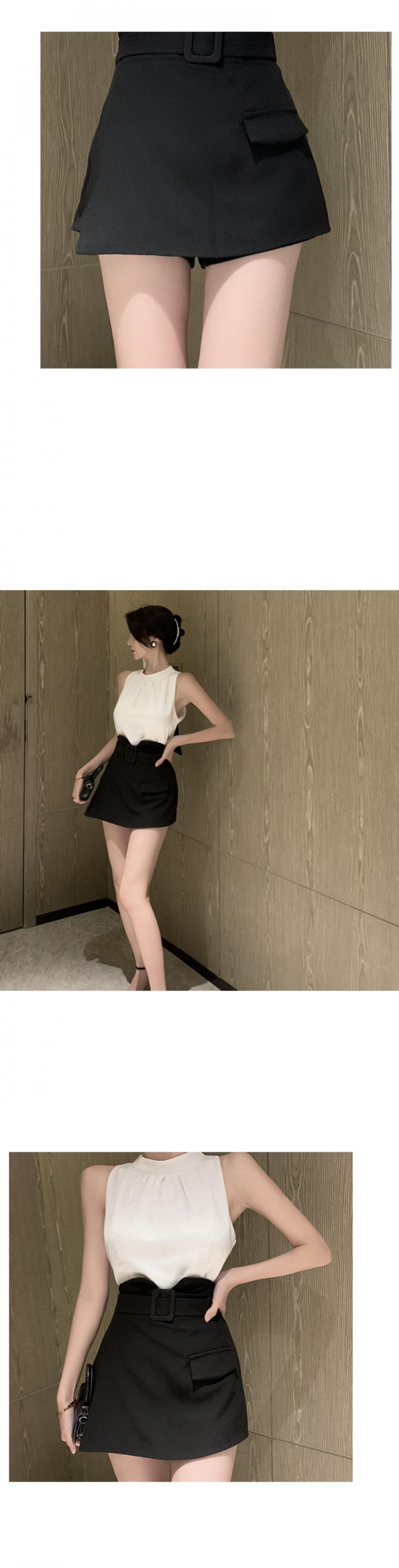 スタイルサマーノースリーブホワイトトップス ハイウェストウェストブラックショーツ スカート パンツ リボン 夏物 ブルマー セブンプリンセス91187304891