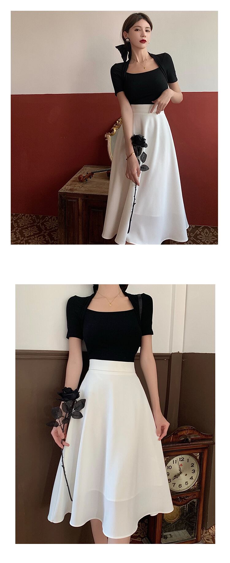 ホワイトシフォンスカート サマー薄手ハイウェストウェストスタイルAライン 夏物 セブンプリンセス76649028880