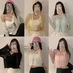 セーター カーディガン薄手レディースサマースリムショートシャツ トップス コート ロング 夏物 シルク セブンプリンセス15864913347