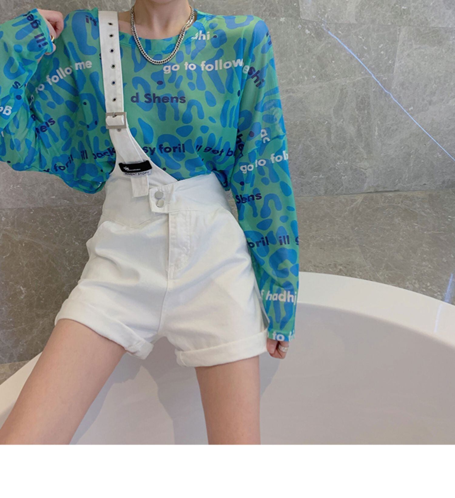オーバーオール サマー薄手ハイウェストホワイトパンツ ルーズショーツ 夏物 ブルマー セブンプリンセス86558498909