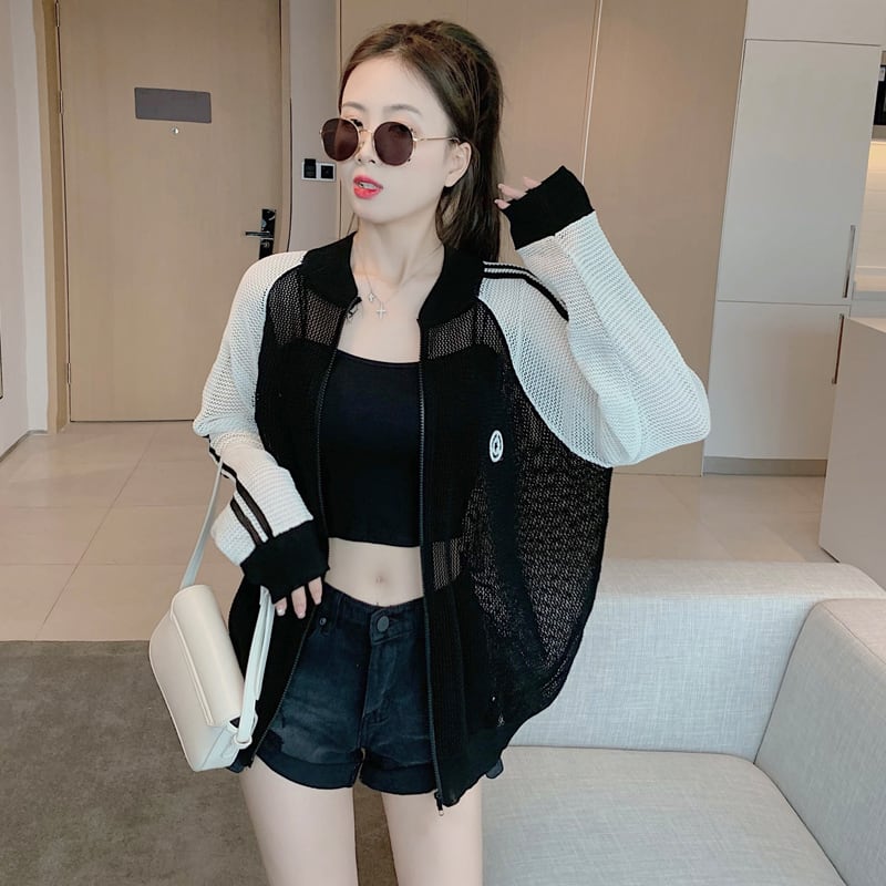 ジャケット サマー薄手ルーズジッパーカジュアルブラウス ニットカーディガントップス ロング 夏物 セブンプリンセス16713352644