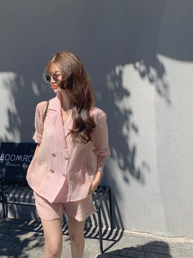 サマースタイル薄手シャツ ハイウェストショーツ ピンク 夏物 ブルマー セブンプリンセス57951127549