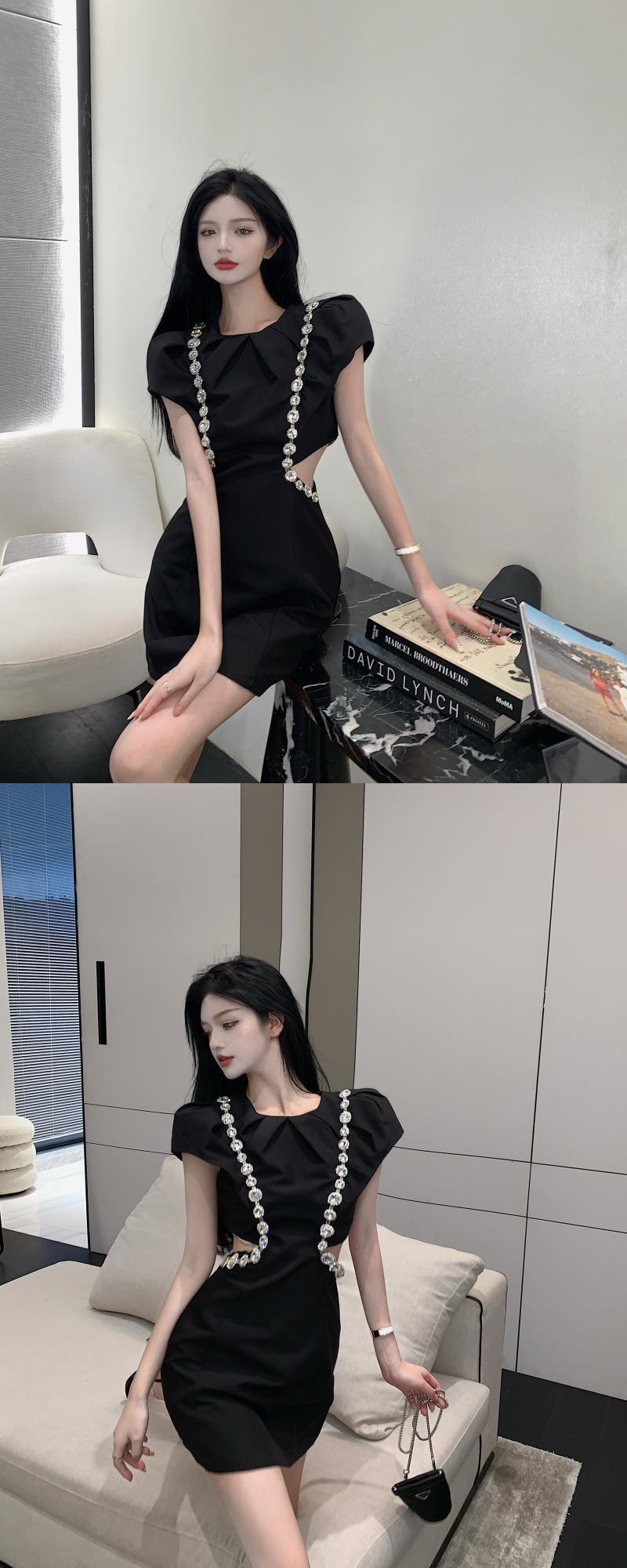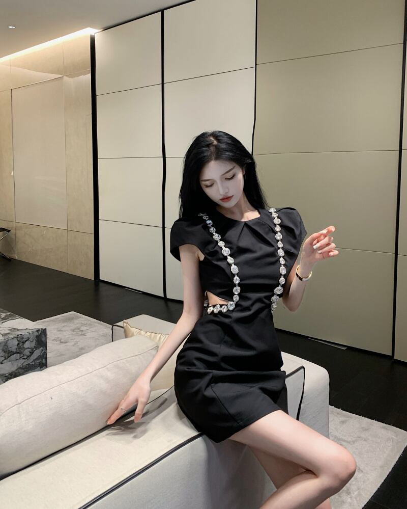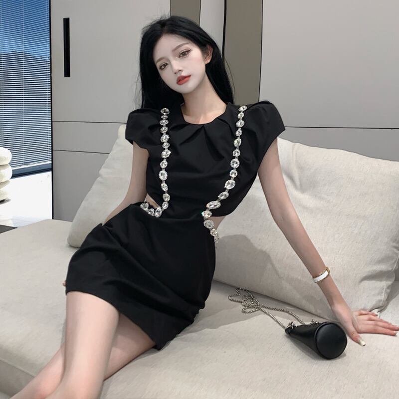 ドレス サマーブラックウェストショートスカート 薄手スリーブ 夏物 セブンプリンセス82807951913