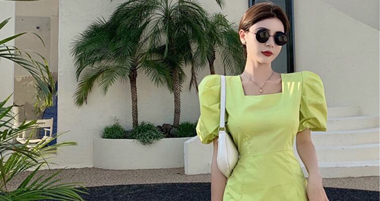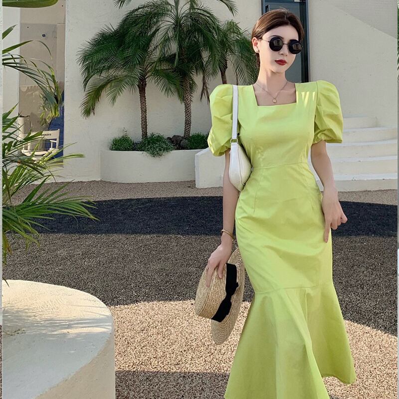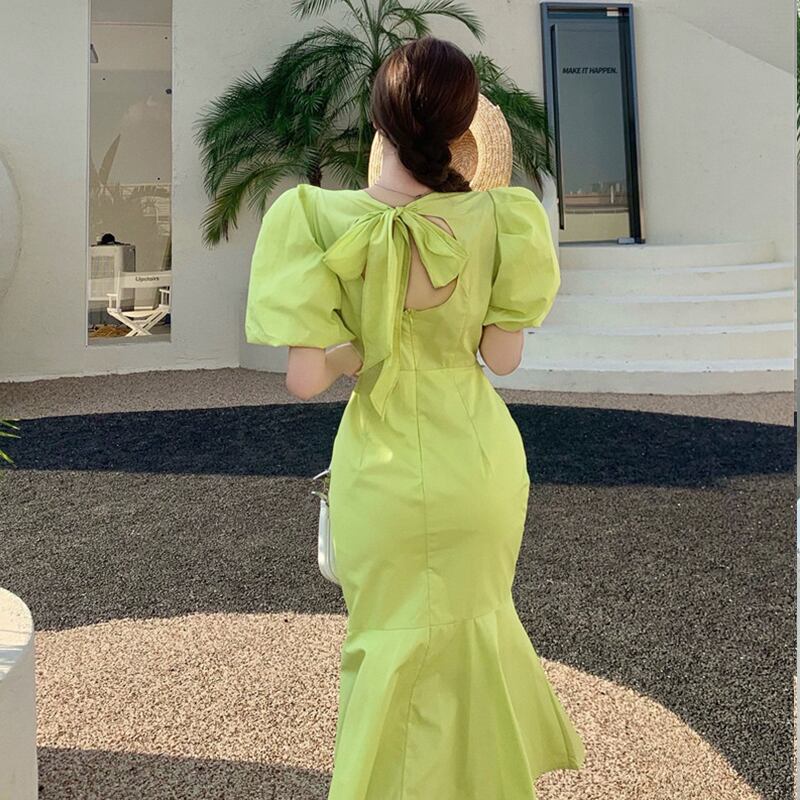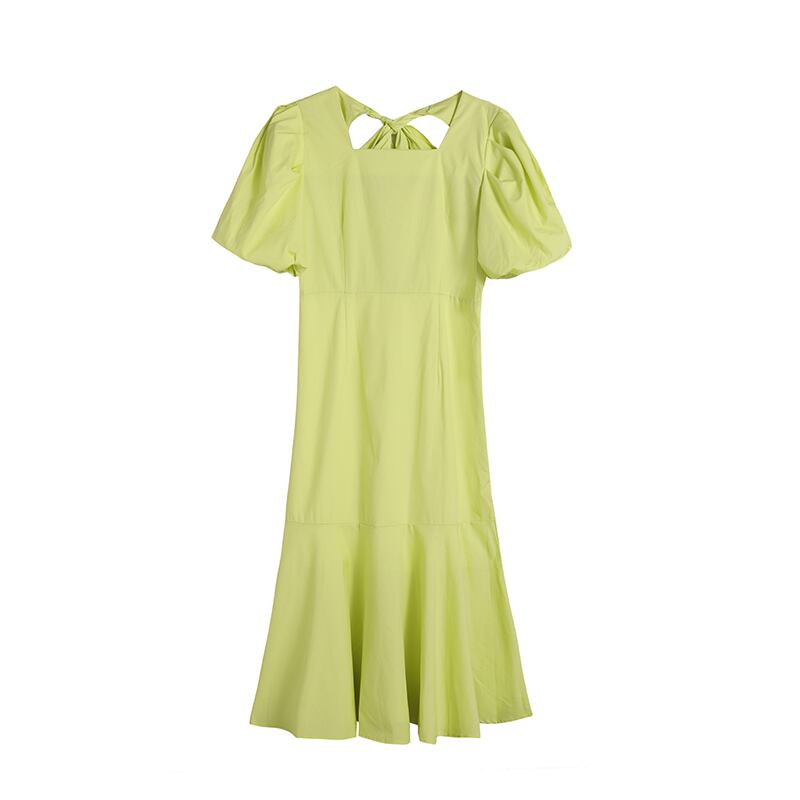 スリーブドレス サマースタンダードホルターグリーンスカート ウェストロング レトロ 夏物 セブンプリンセス24137719633