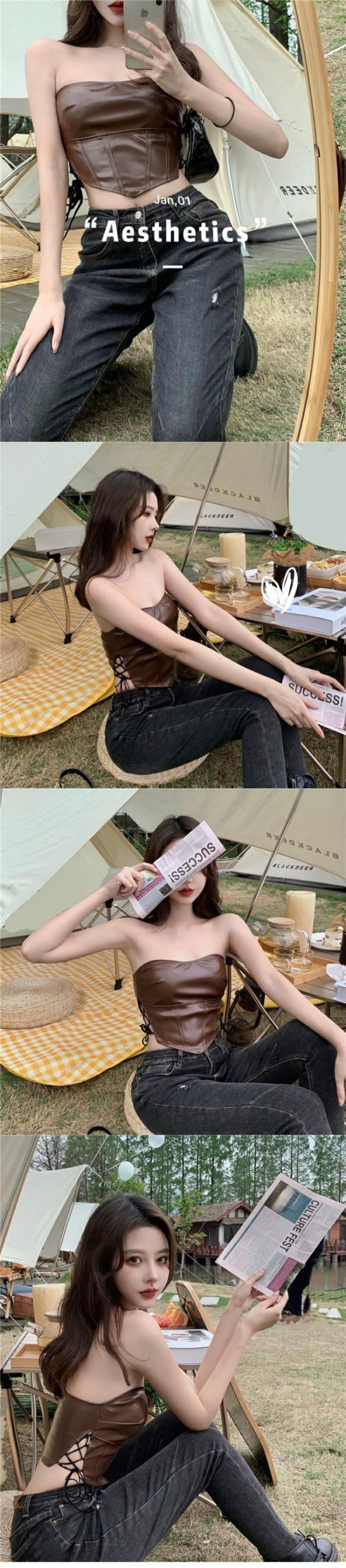 レザーサマーノースリーブトップス シャツ ブラウス 夏物 セブンプリンセス22279336211