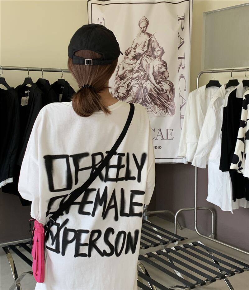 ホワイトTシャツ プリントルーズサマーロングカジュアルトップス 夏物 セブンプリンセス46278638602