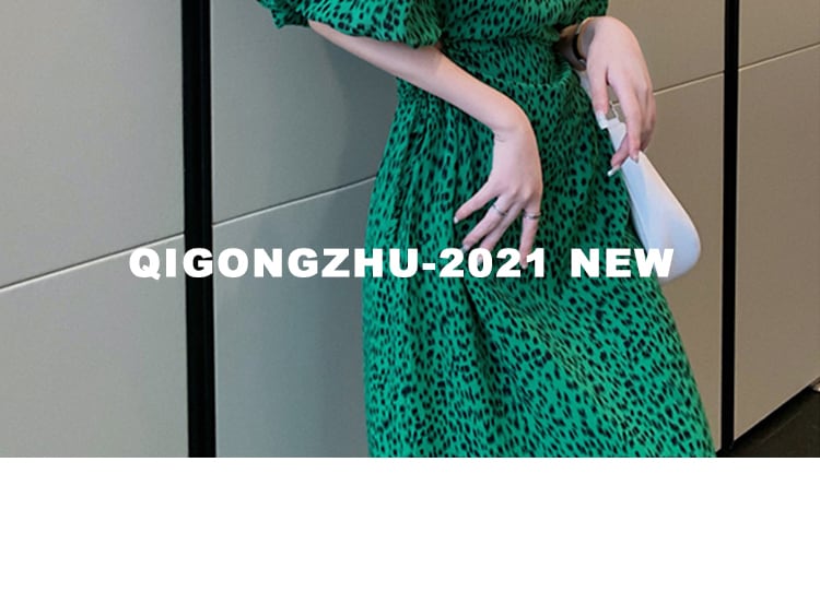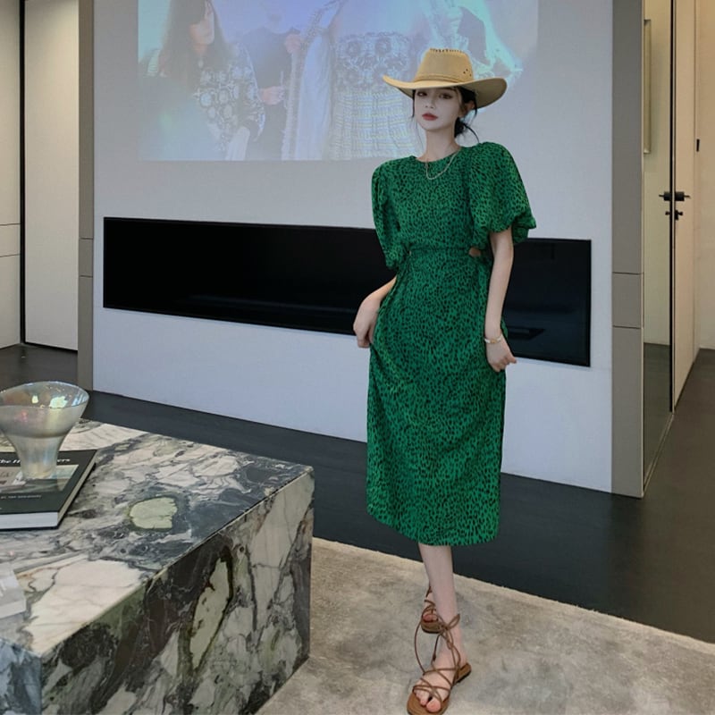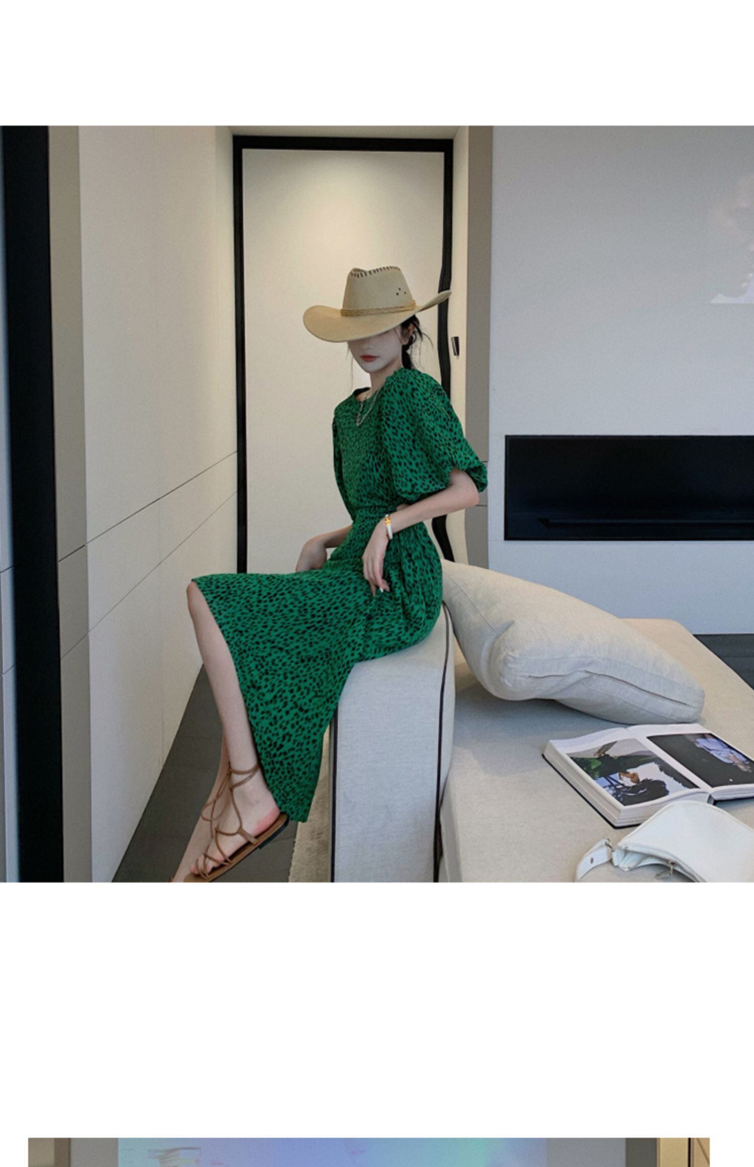 ドレス サマーウェスト薄手レオパードスカート スタイルスタンダードグリーンロング レトロ 夏物 セブンプリンセス77959746899