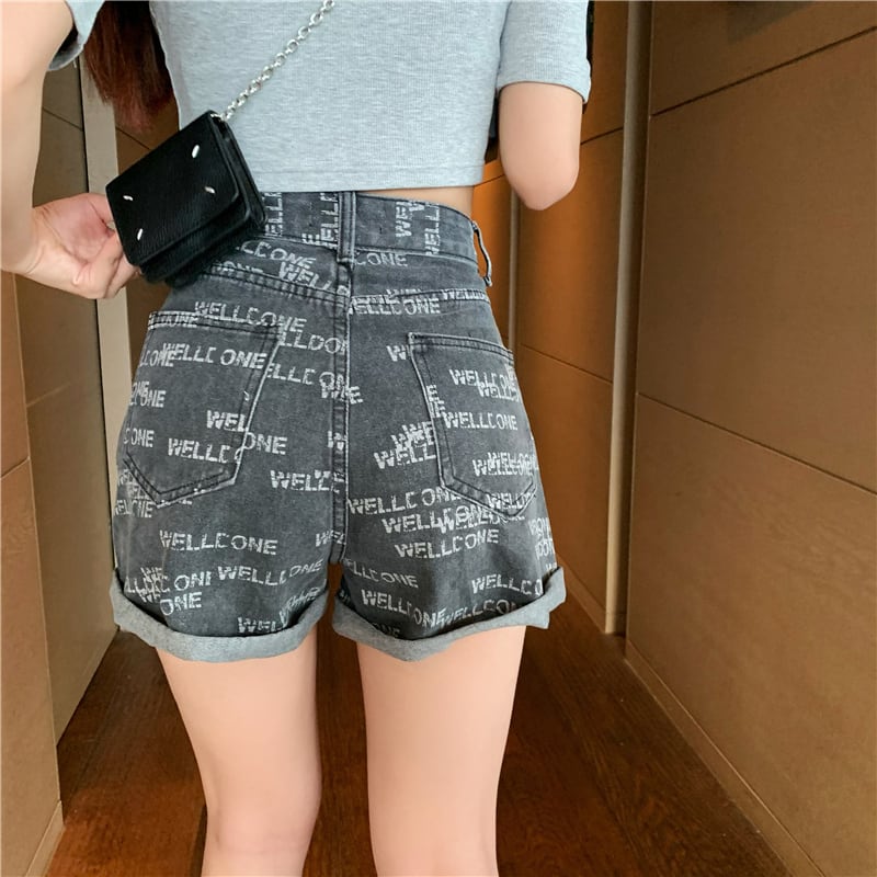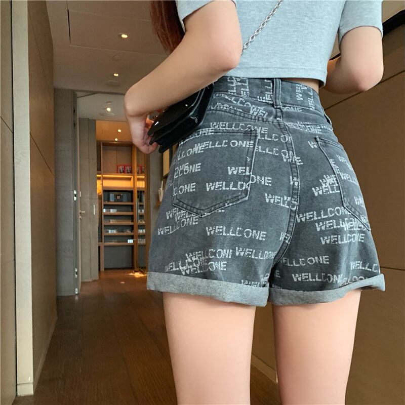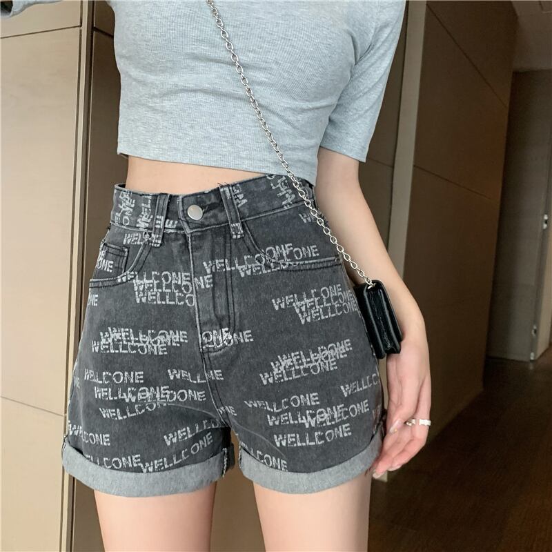 ショーツ サマー薄手ハイウェストウェストプリントパンツ レッドAライン 夏物 ブルマー セブンプリンセス73784953218