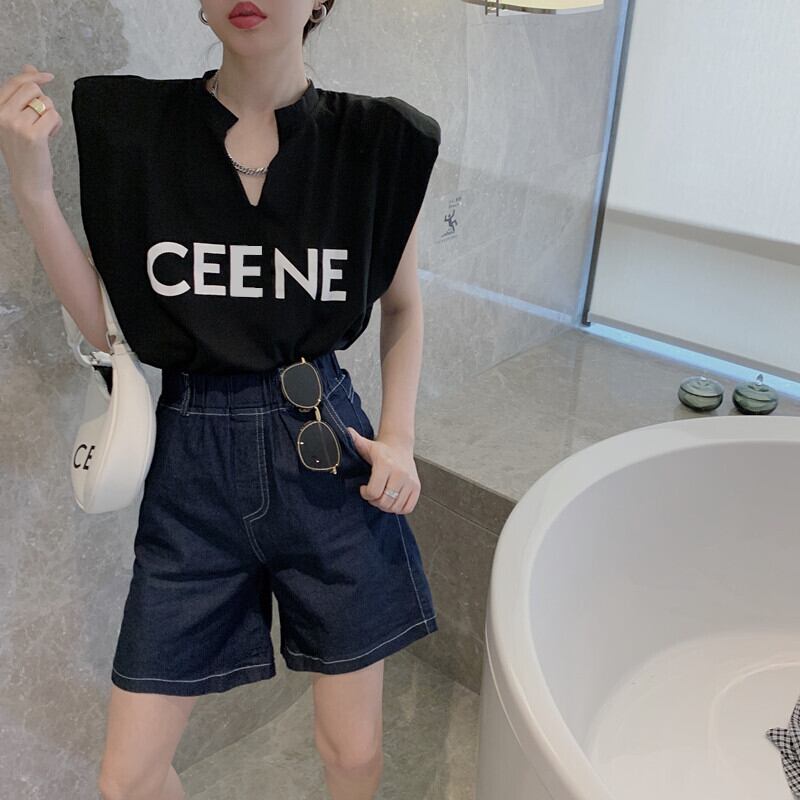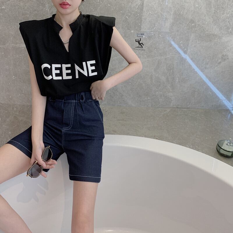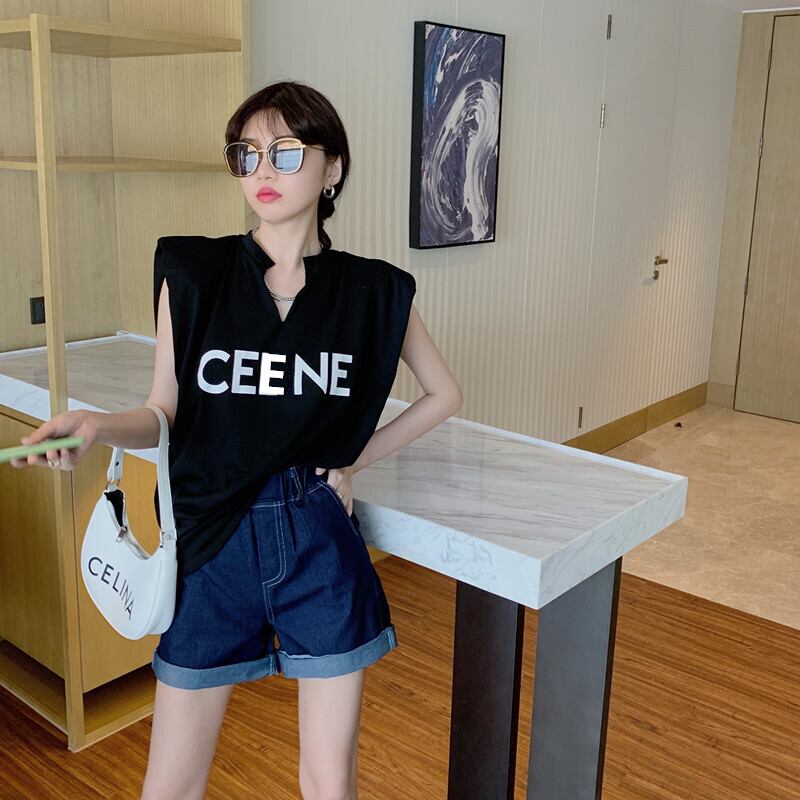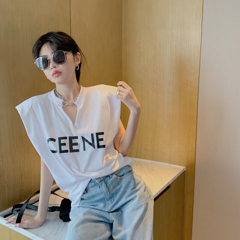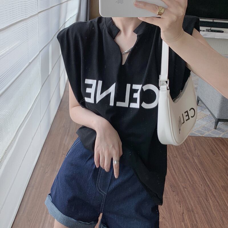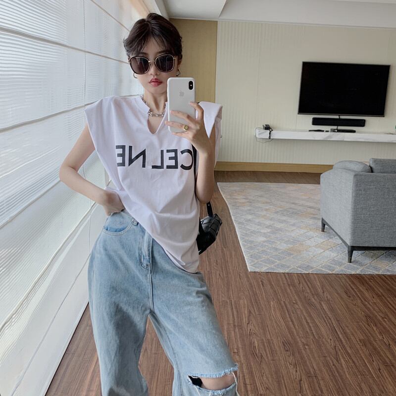 Tシャツ サマーVネックルーズノースリーブレッドトップス 夏物 セブンプリンセス33067302151