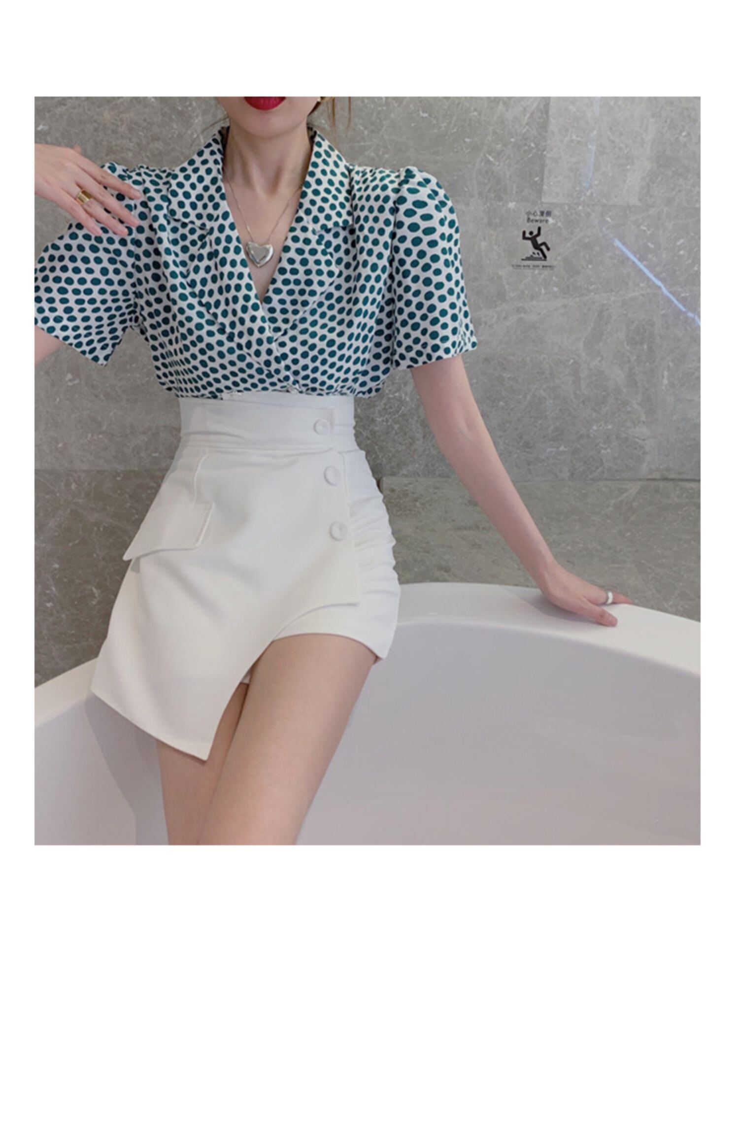 スカート サマーハイウェストウェスト薄手Aラインホワイトショート 夏物 セブンプリンセス4202739371